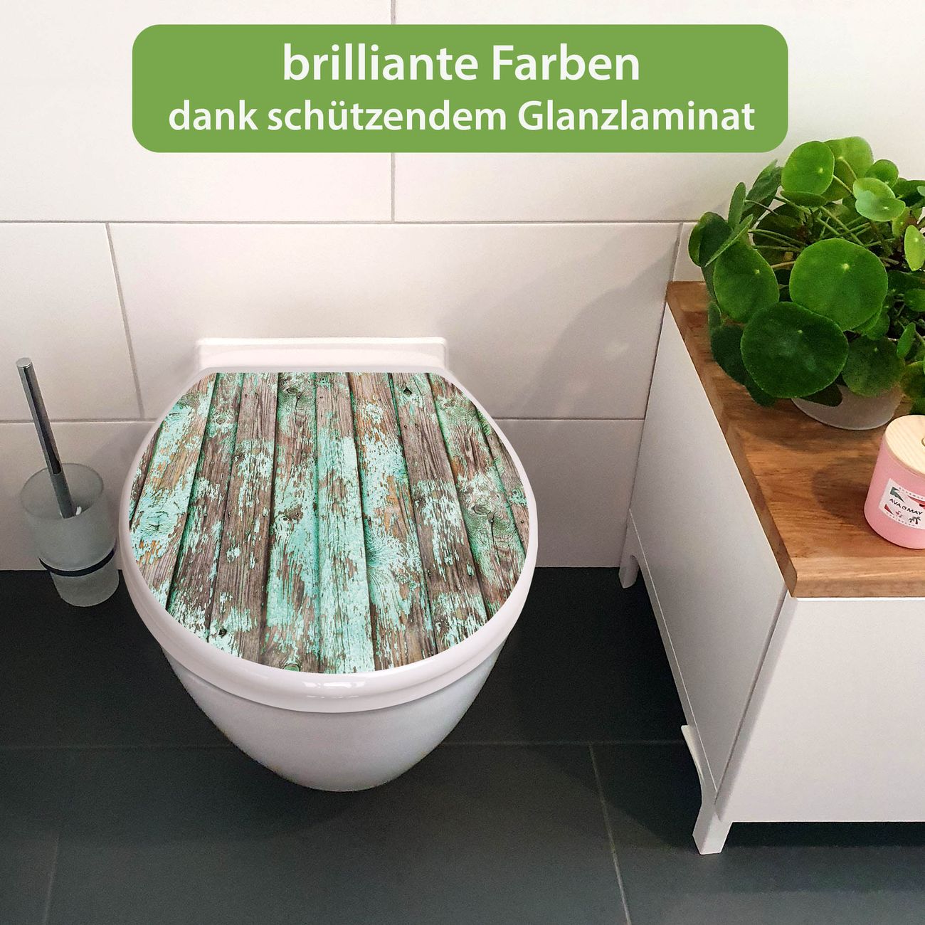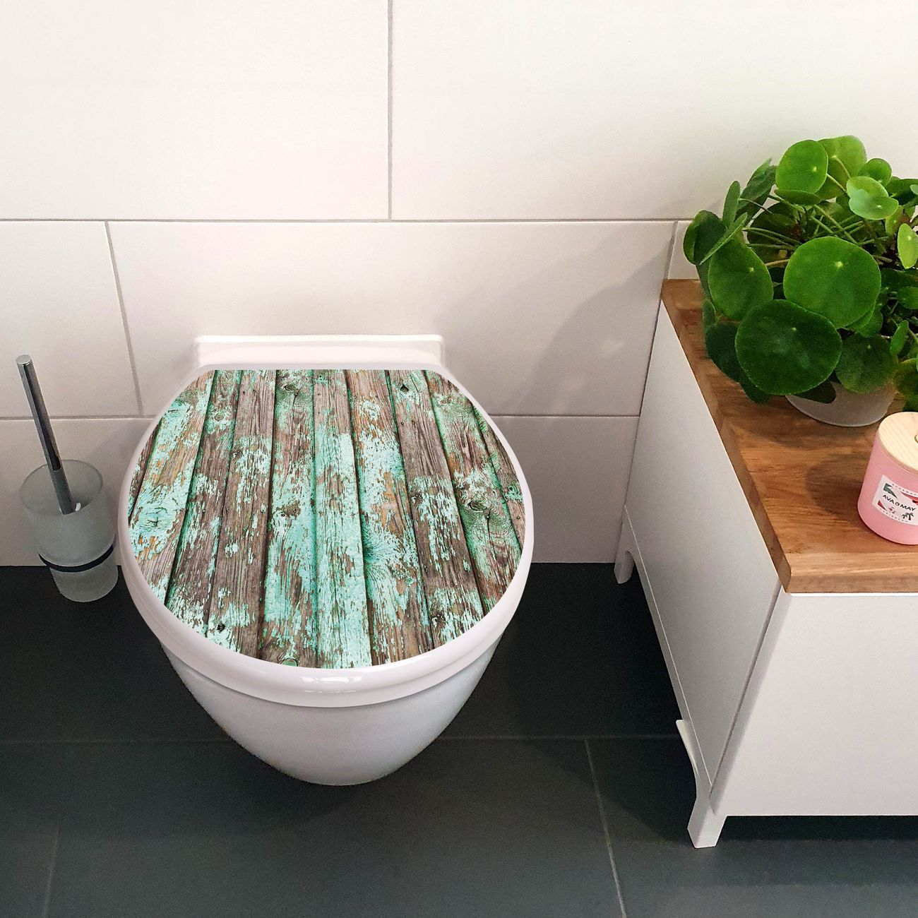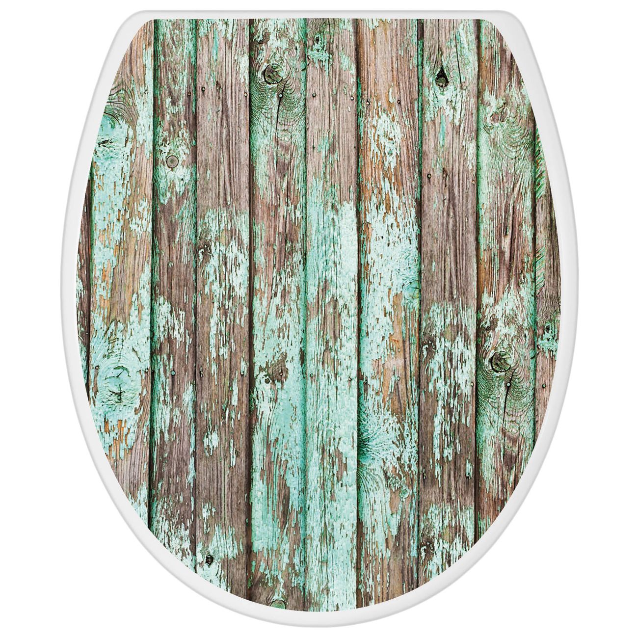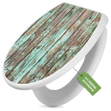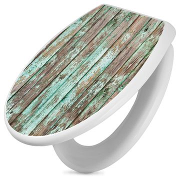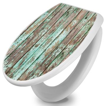 Toilettendeckel weiß mit Absenkautomatik Motiv Verwittertes Holz