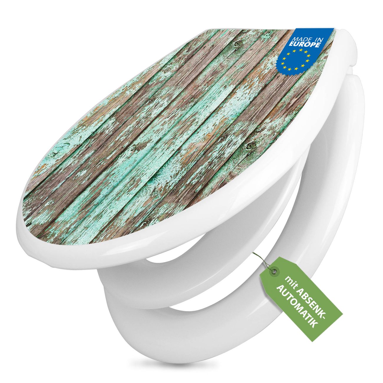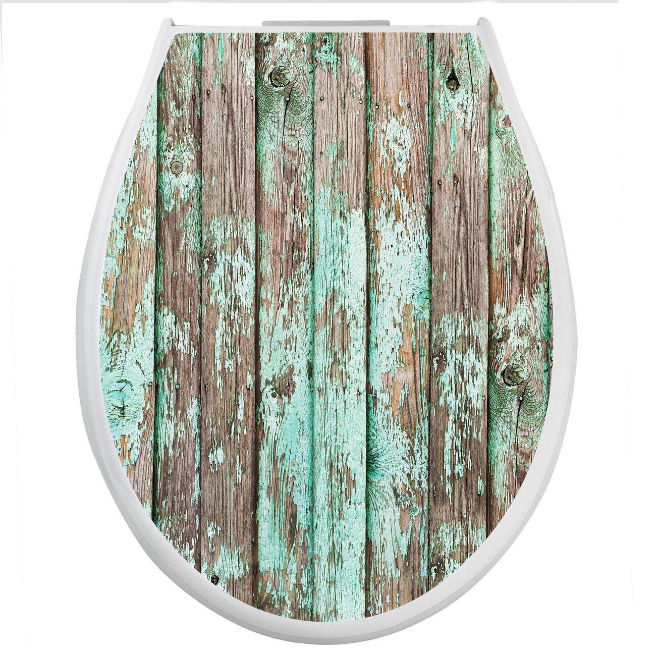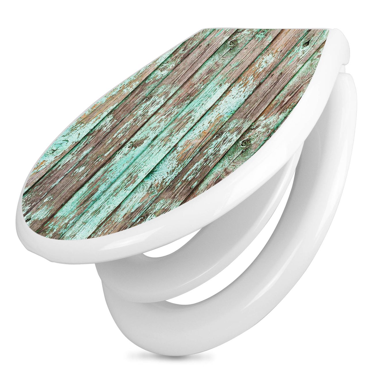 Toilettendeckel weiß mit Absenkautomatik Motiv Verwittertes Holz