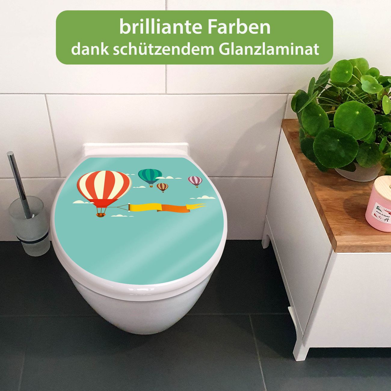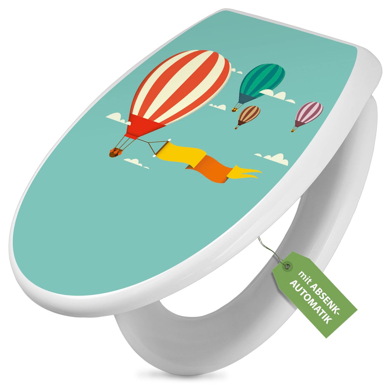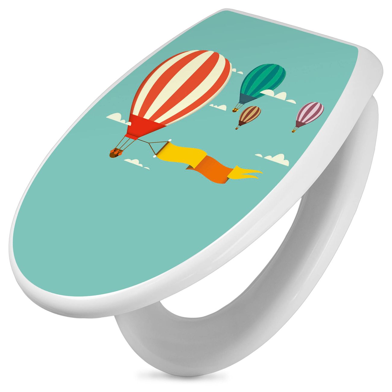 Toilettendeckel weiß mit Absenkautomatik Motiv Vier Ballons