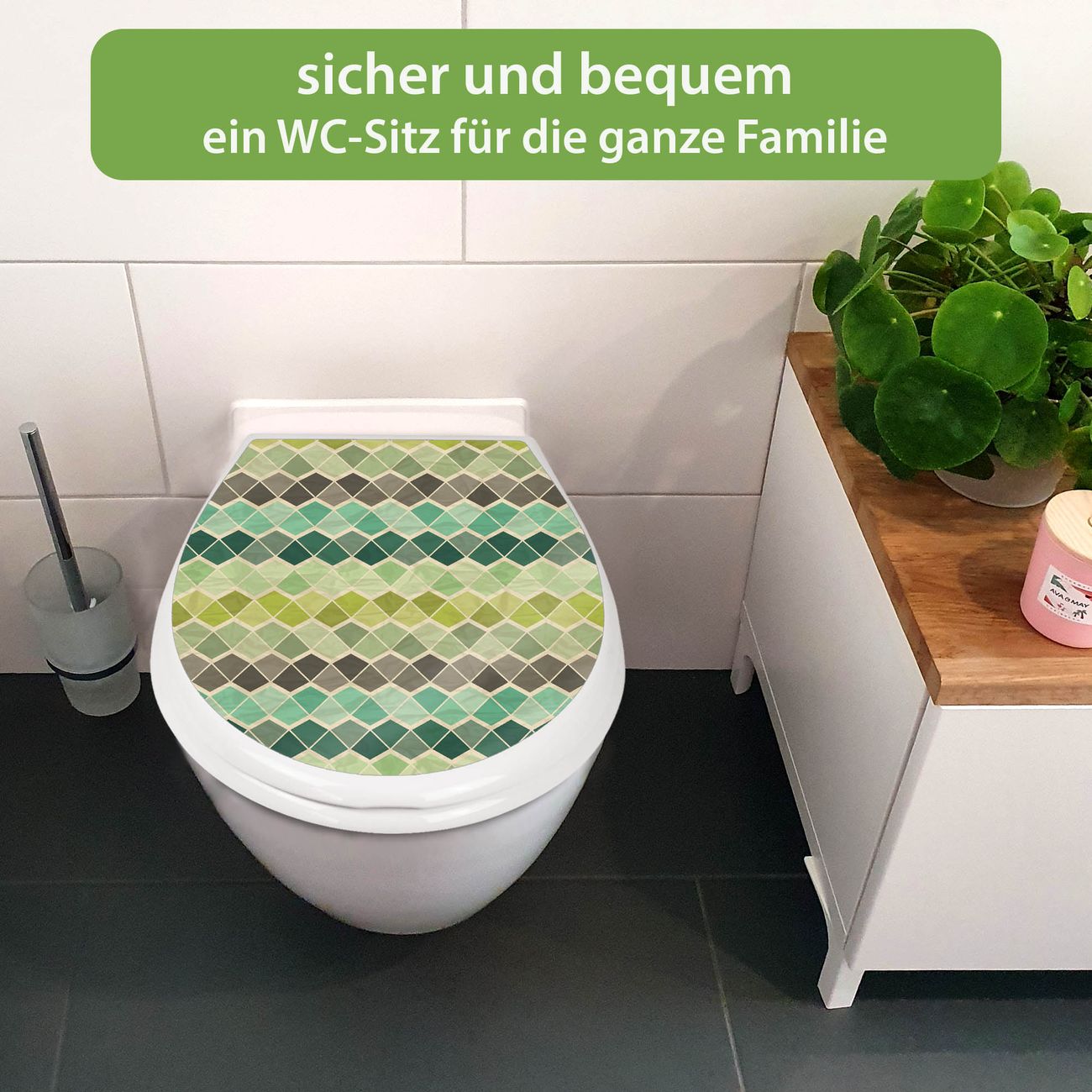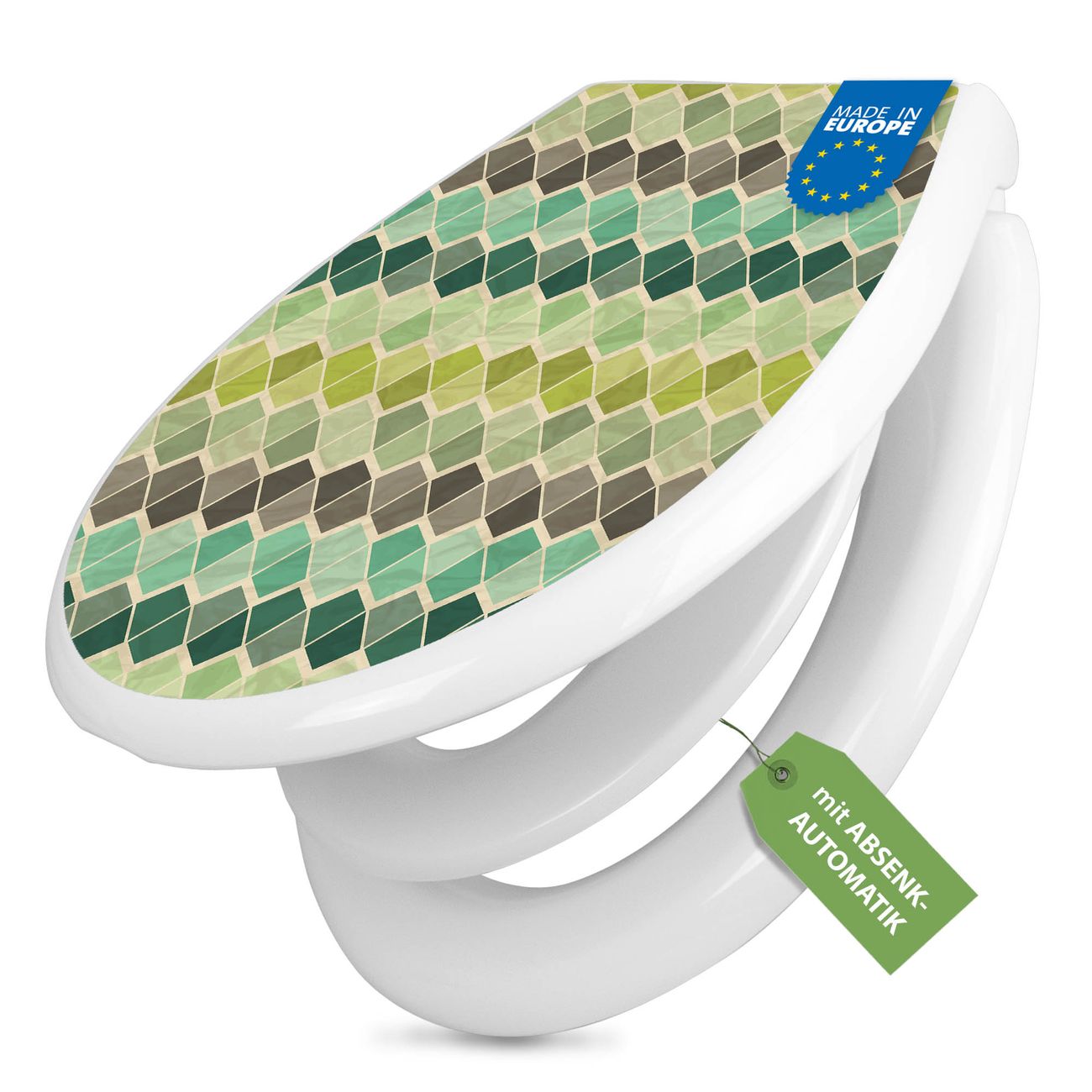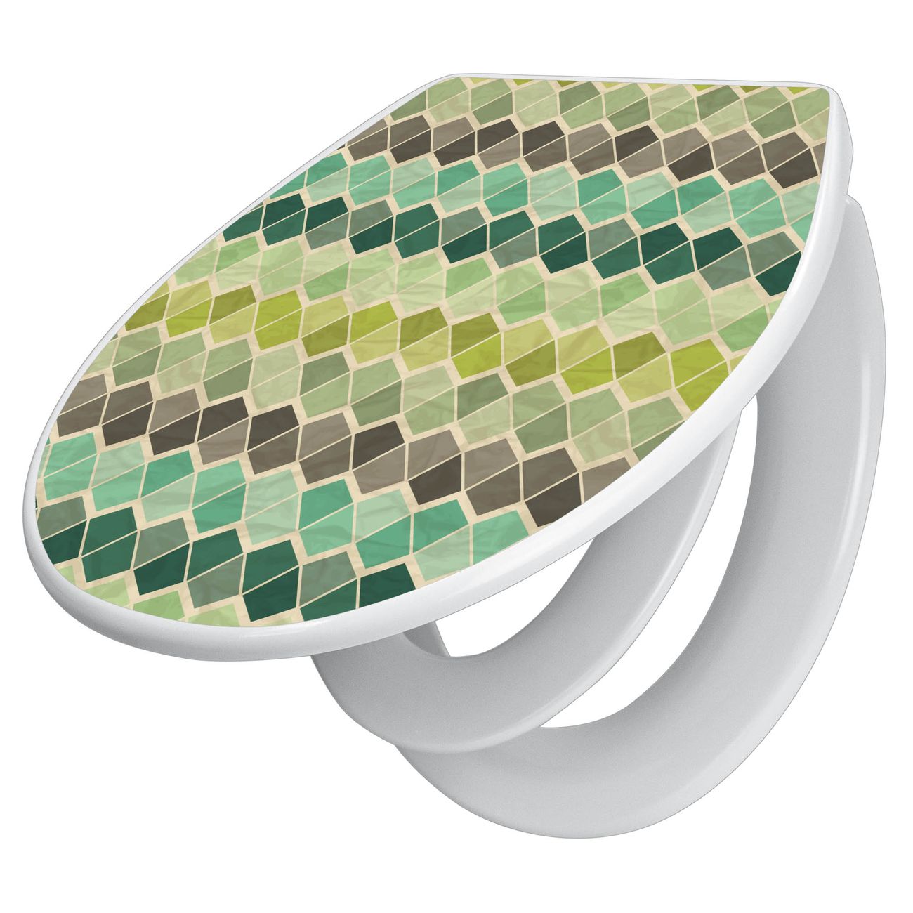 Toilettendeckel weiß mit Absenkautomatik Motiv Vier Farben Grün