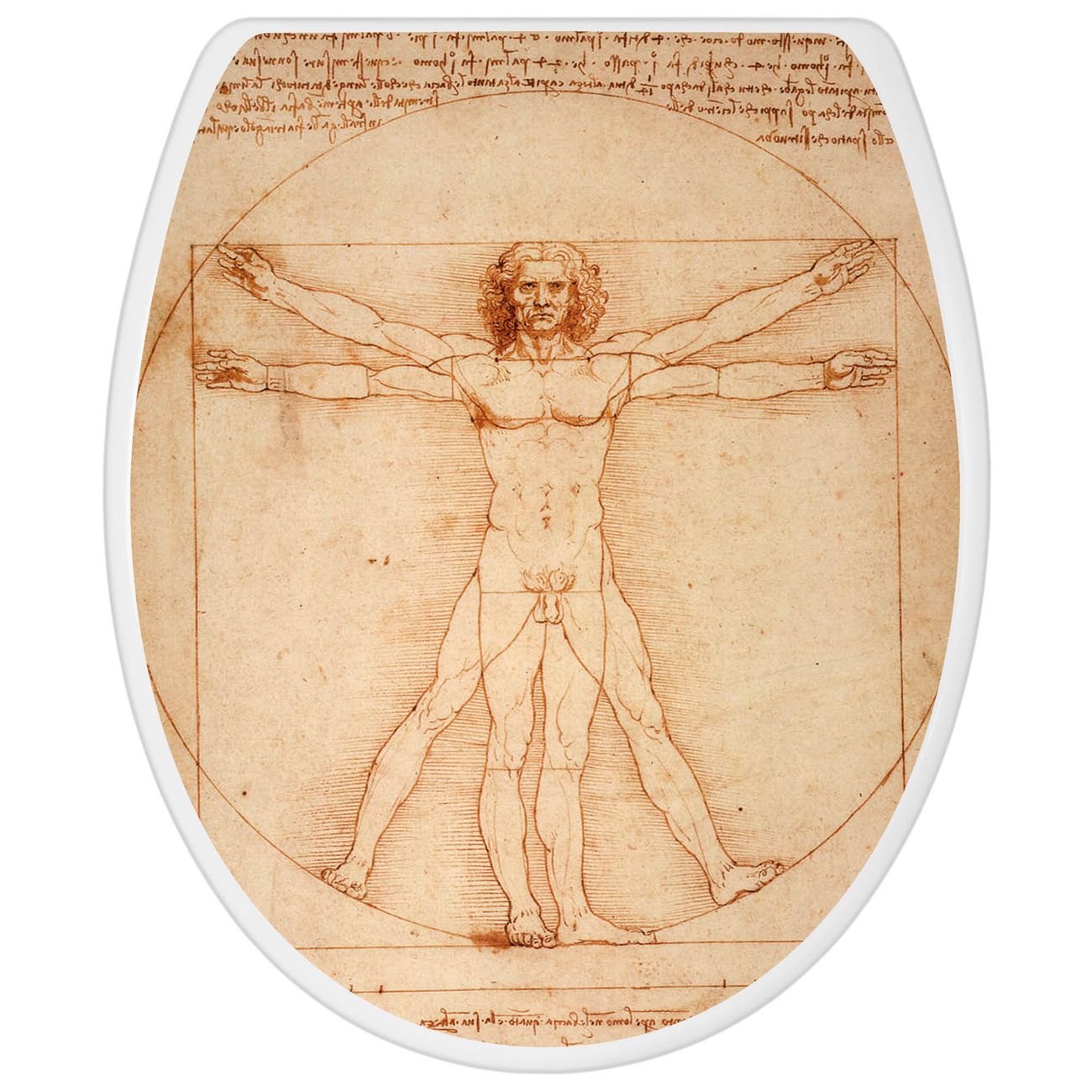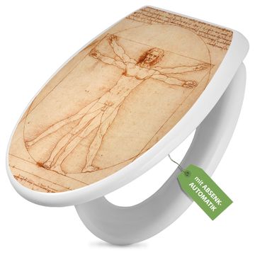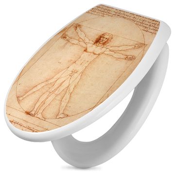 Toilettendeckel weiß mit Absenkautomatik Motiv Vitruvianische Figur