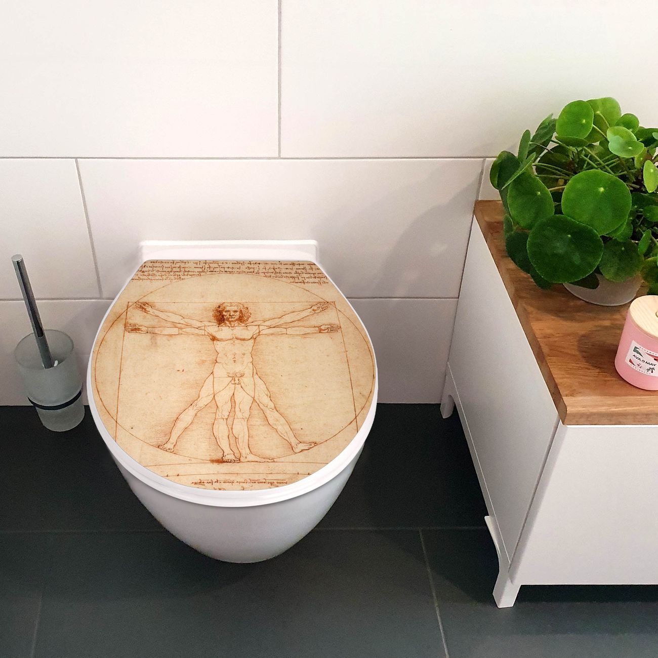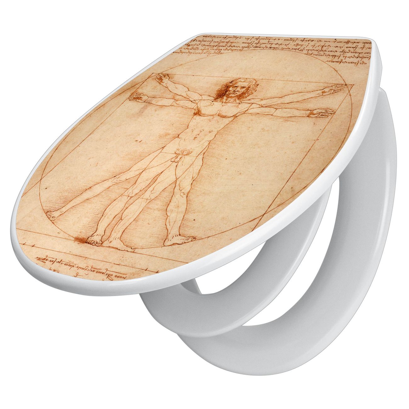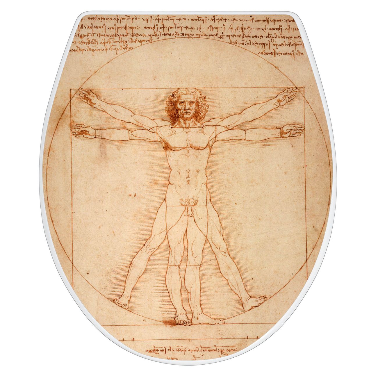 Toilettendeckel weiß mit Absenkautomatik Motiv Vitruvianische Figur
