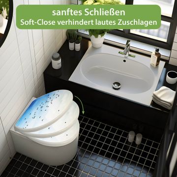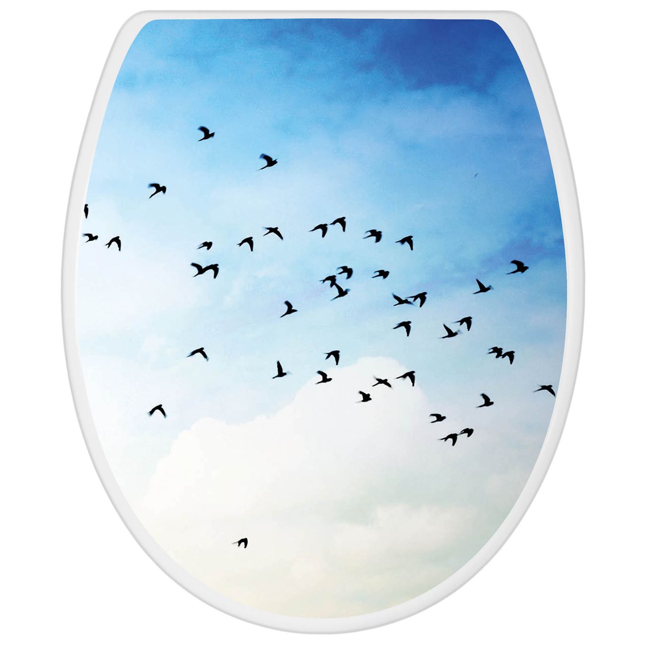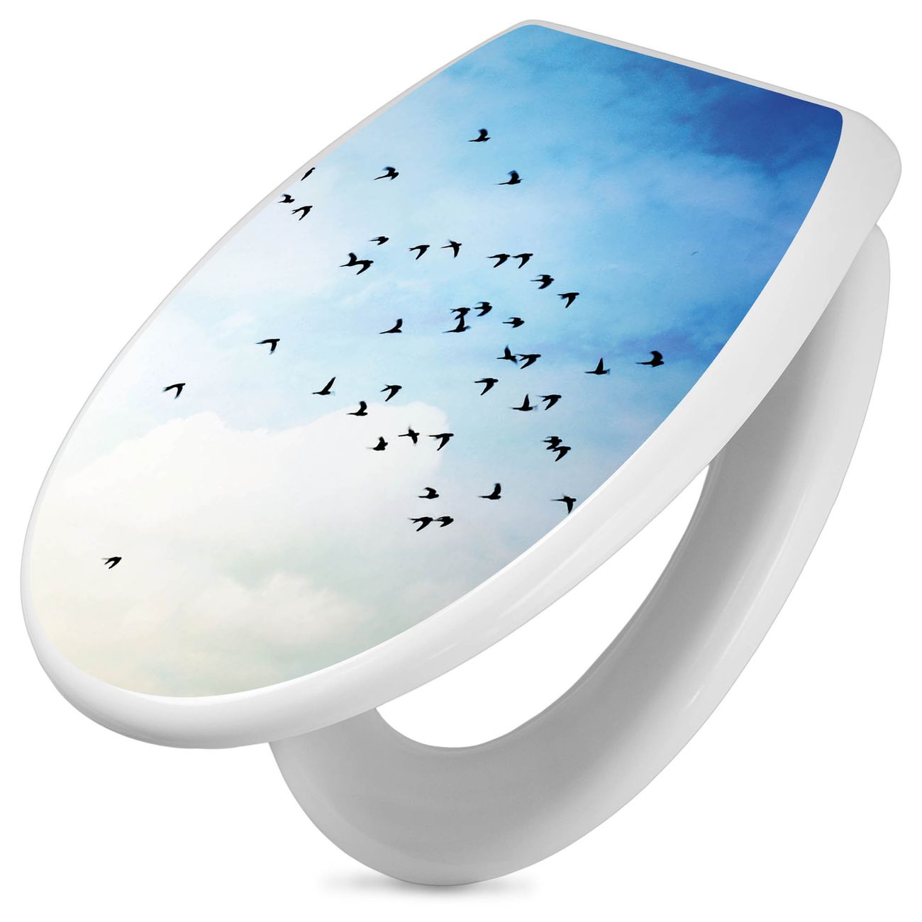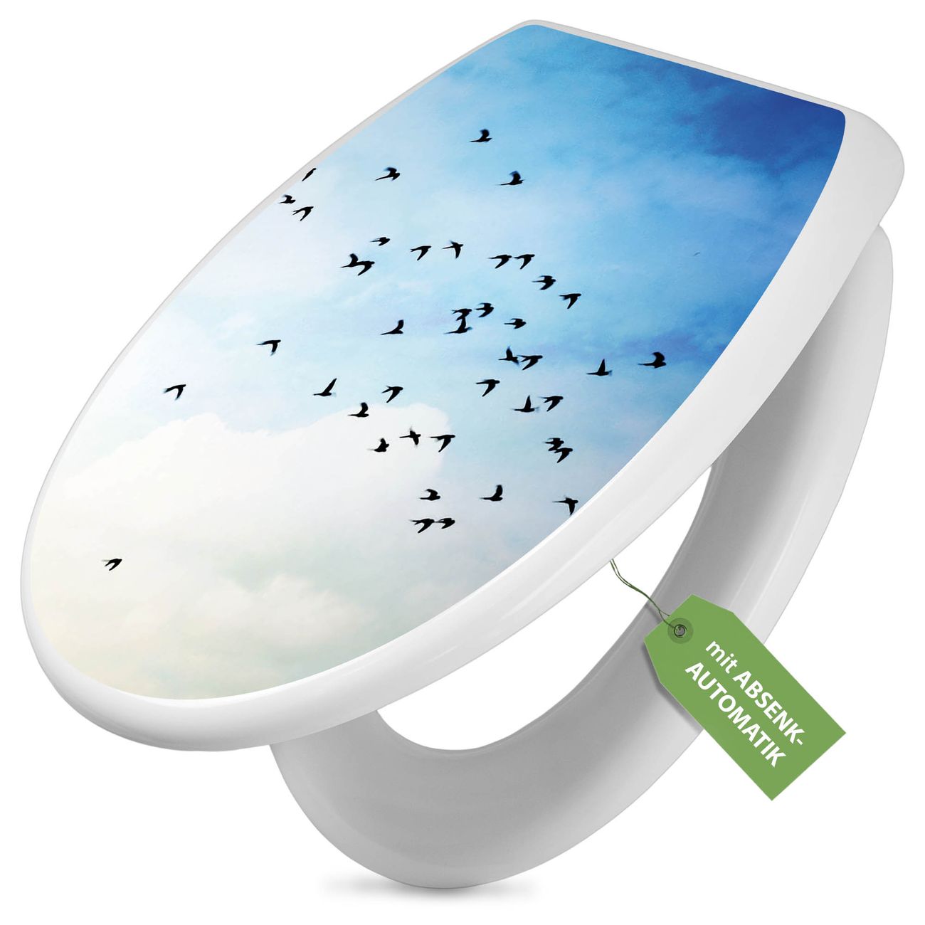Toilettendeckel weiß mit Absenkautomatik Motiv Vögel am Himmel 2