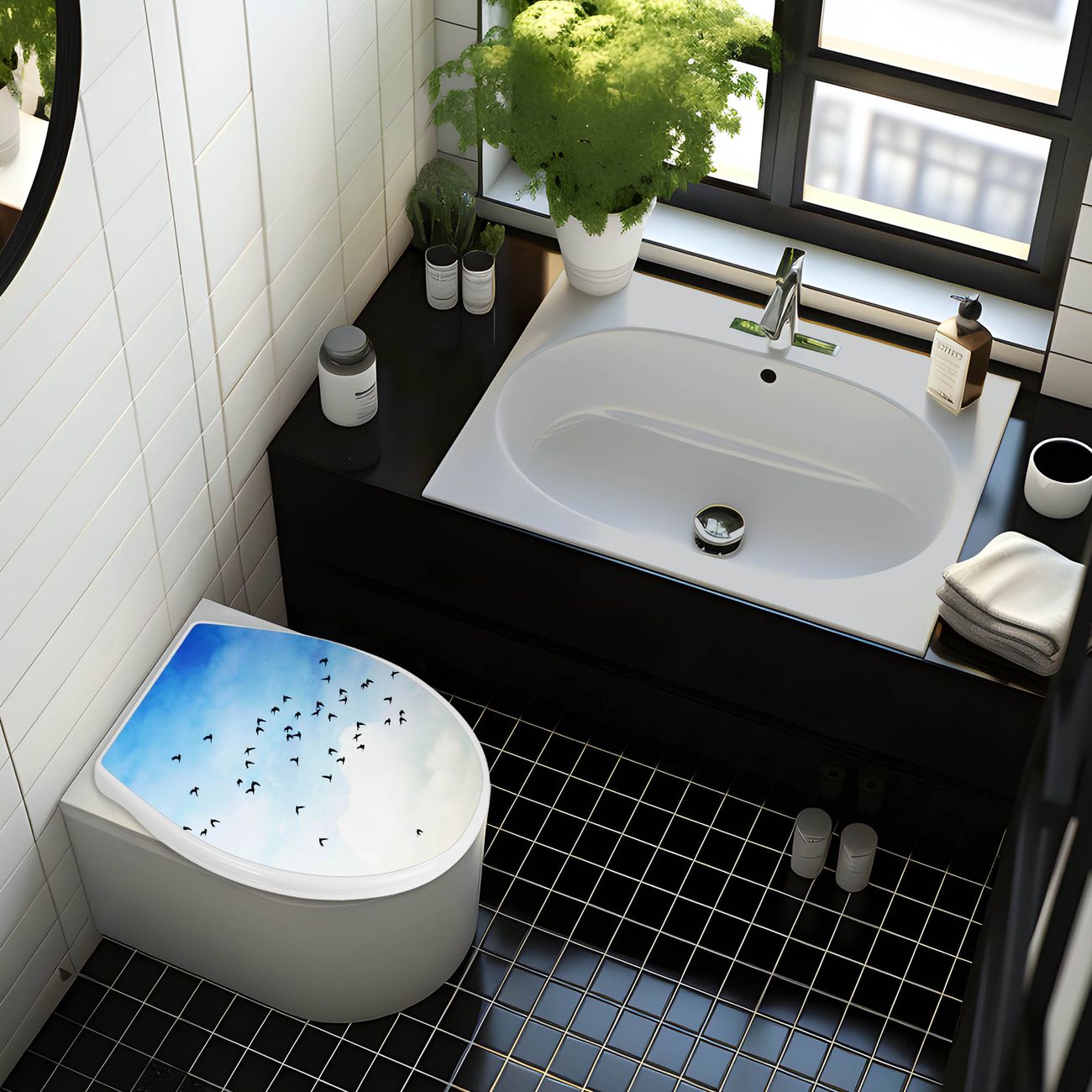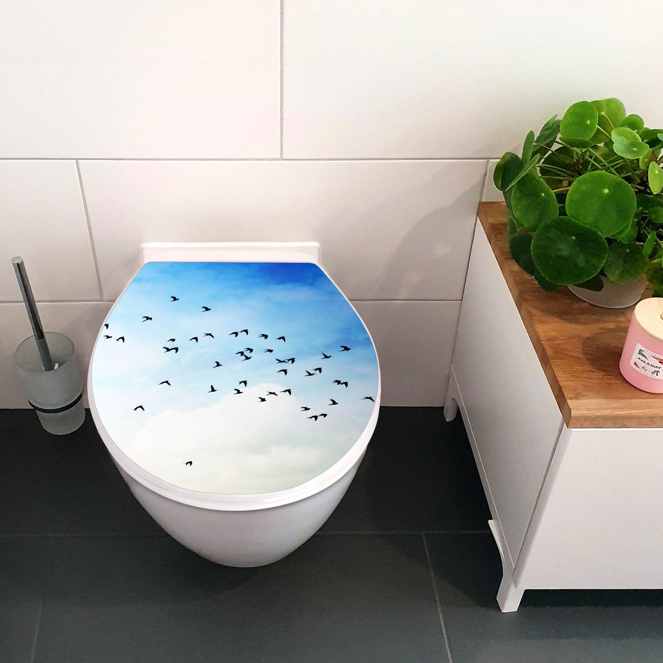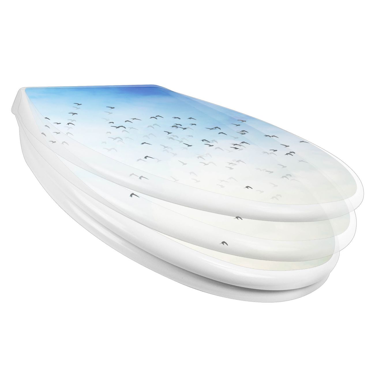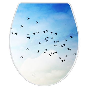 Toilettendeckel weiß mit Absenkautomatik Motiv Vögel am Himmel 2