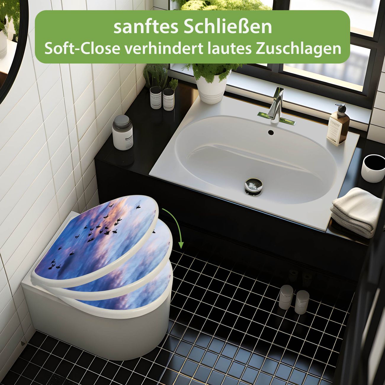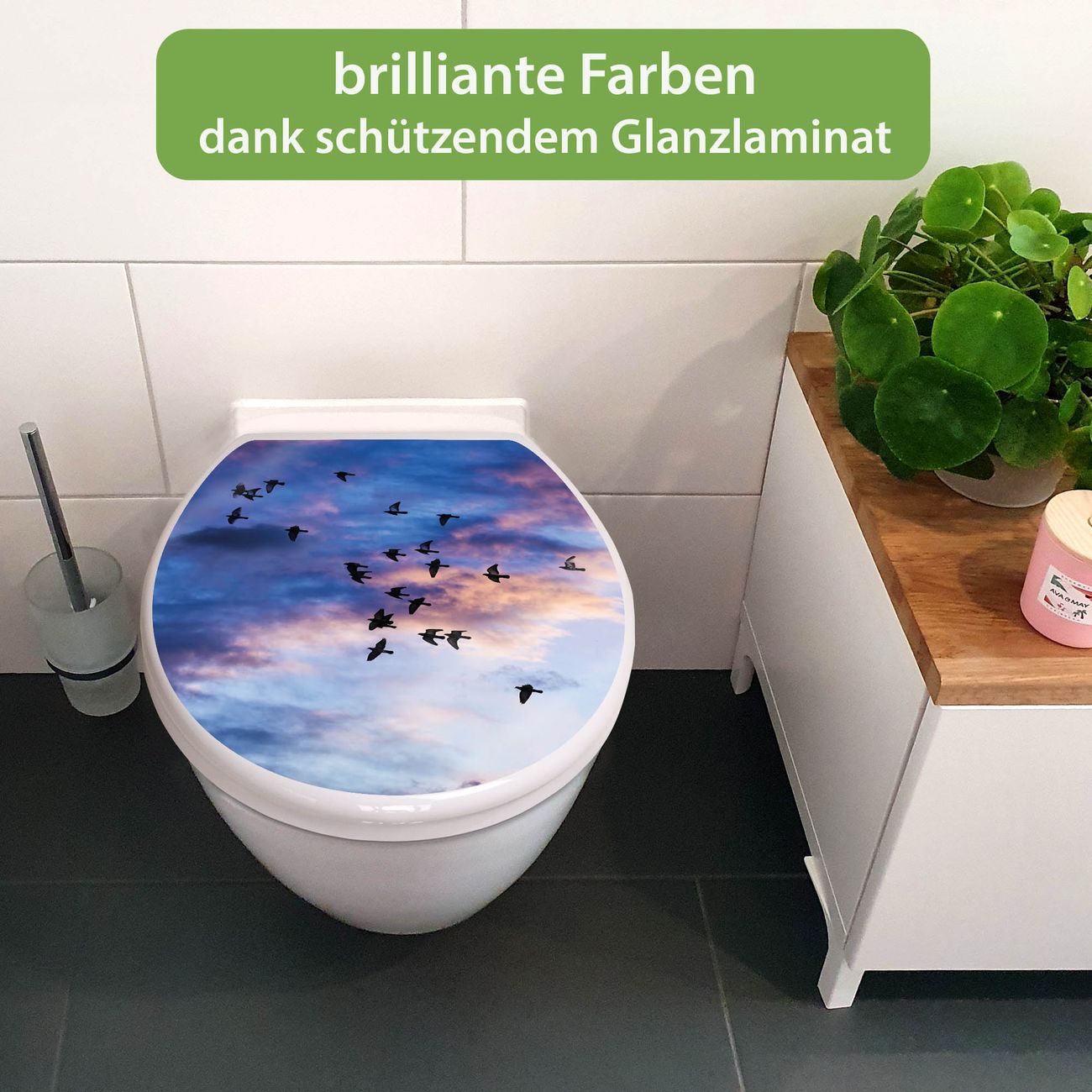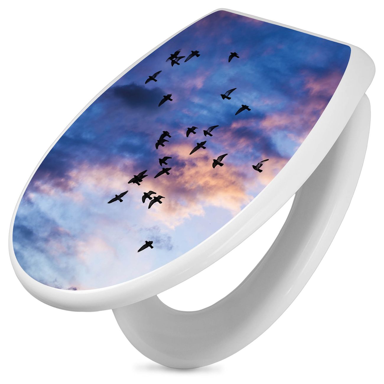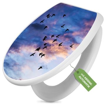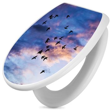 Toilettendeckel weiß mit Absenkautomatik Motiv Vögel am Himmel 3