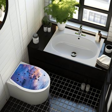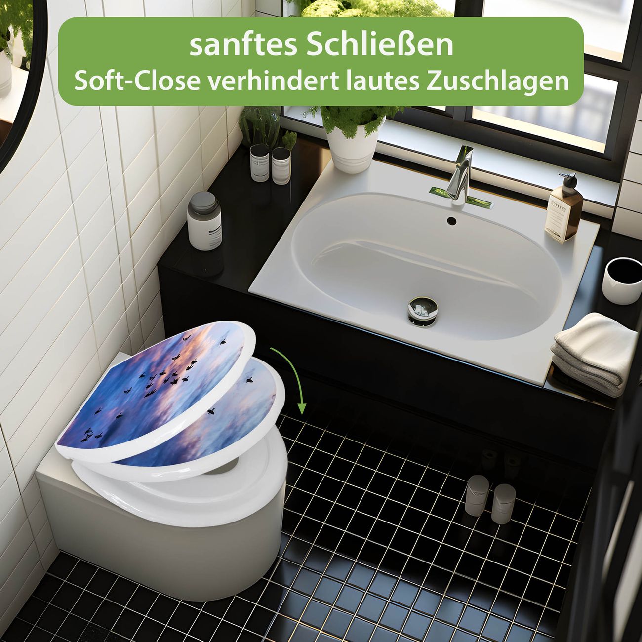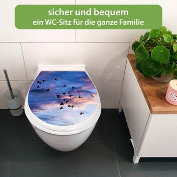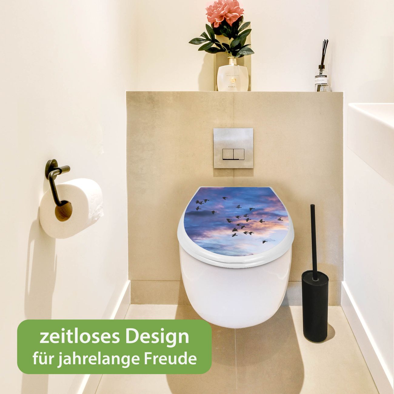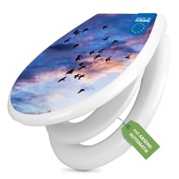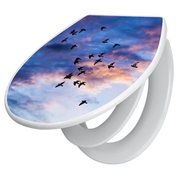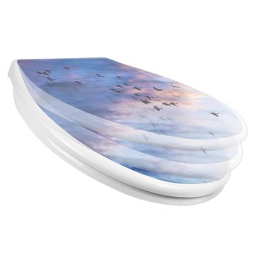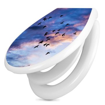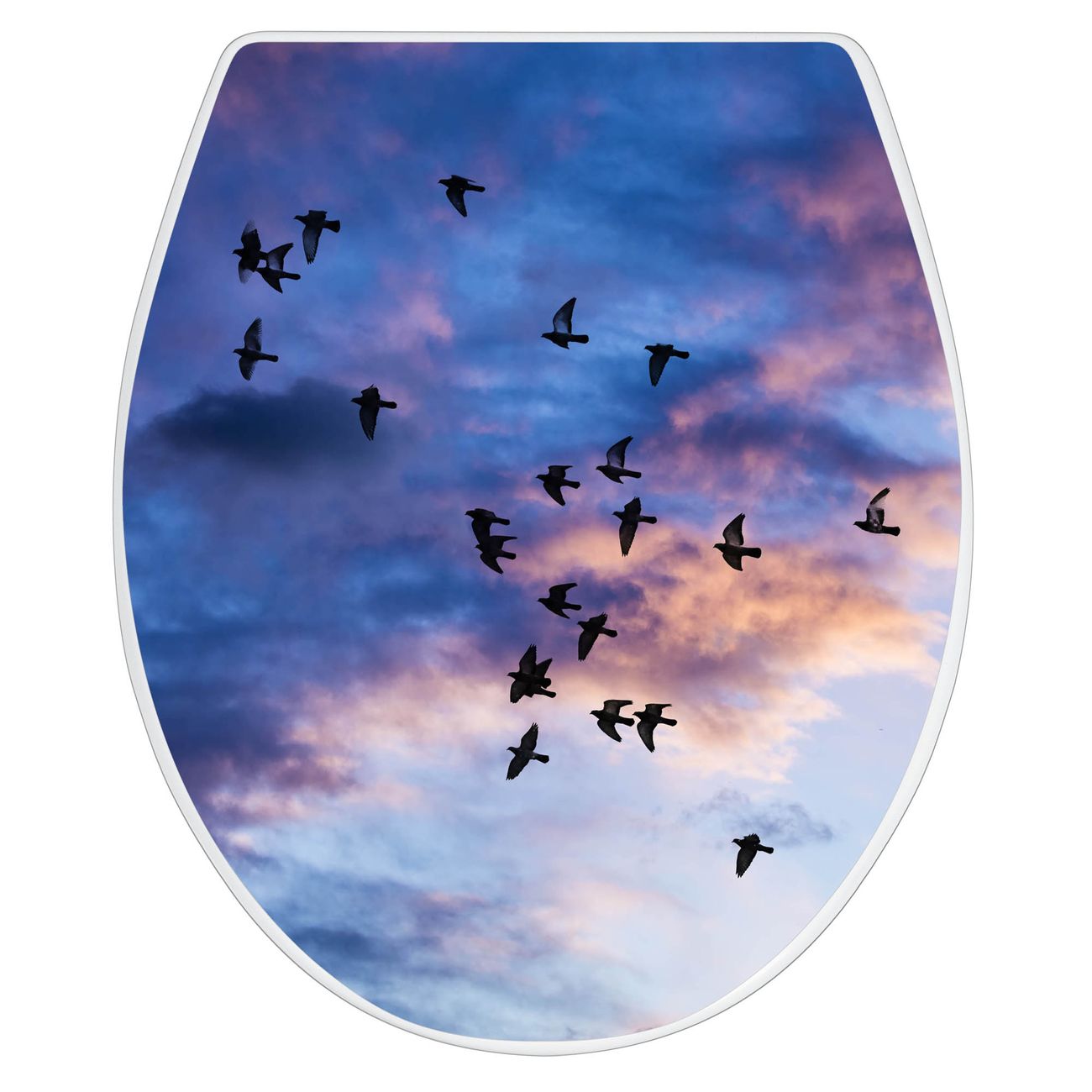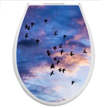 Toilettendeckel weiß mit Absenkautomatik Motiv Vögel am Himmel 3