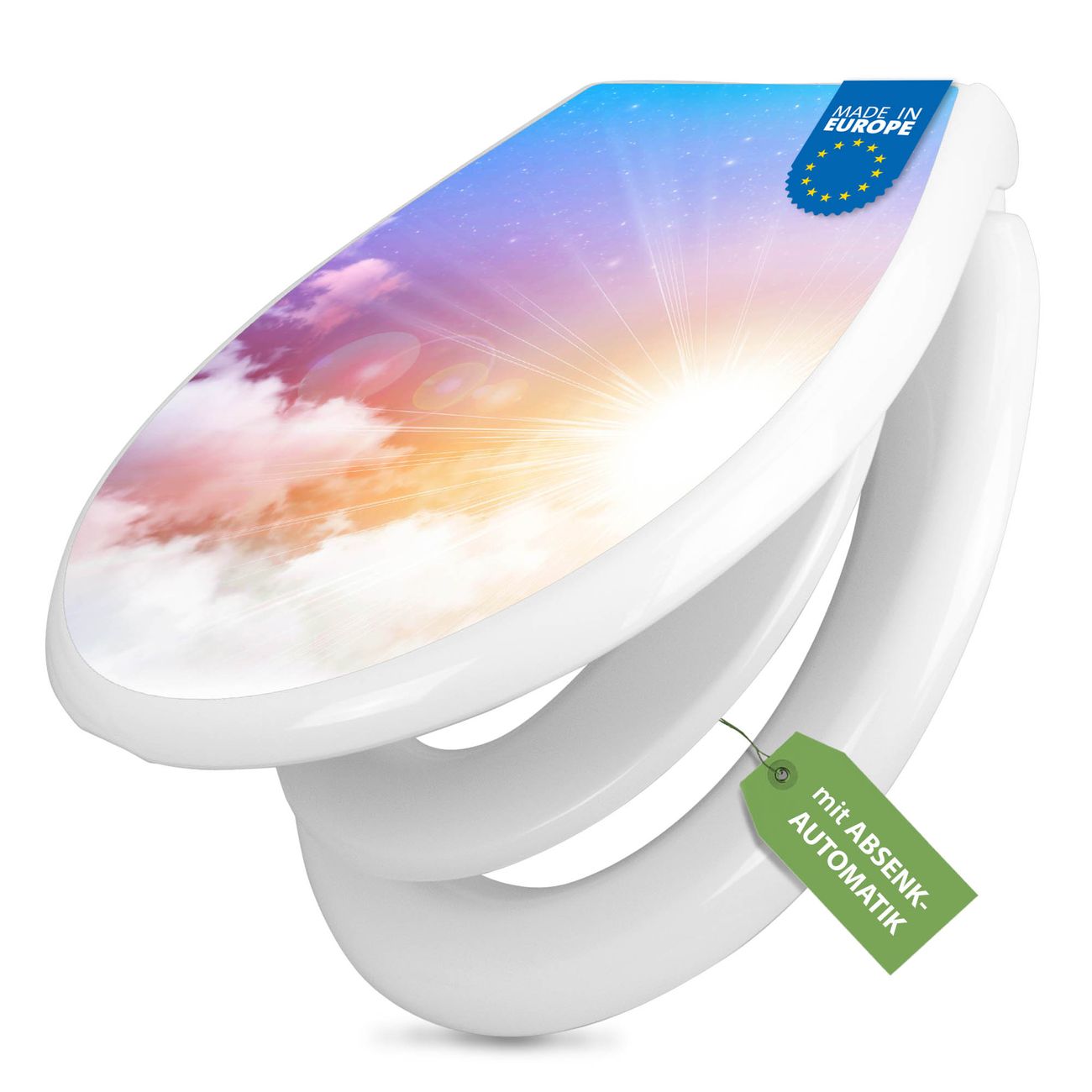 Toilettendeckel weiß mit Absenkautomatik Motiv Vögel am Himmel