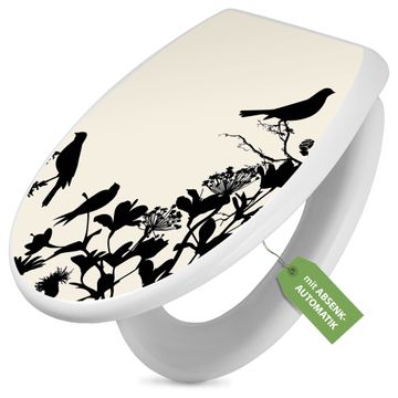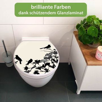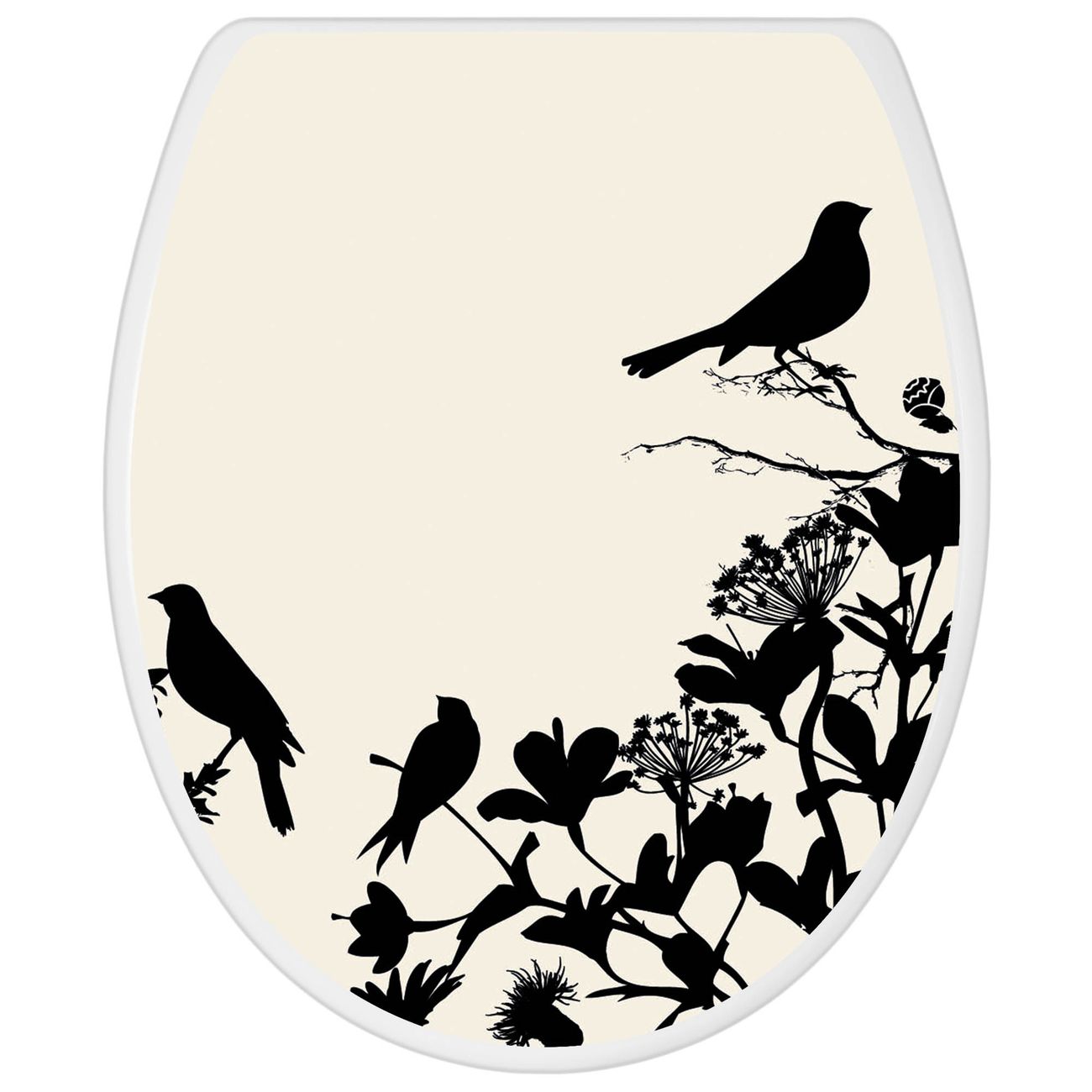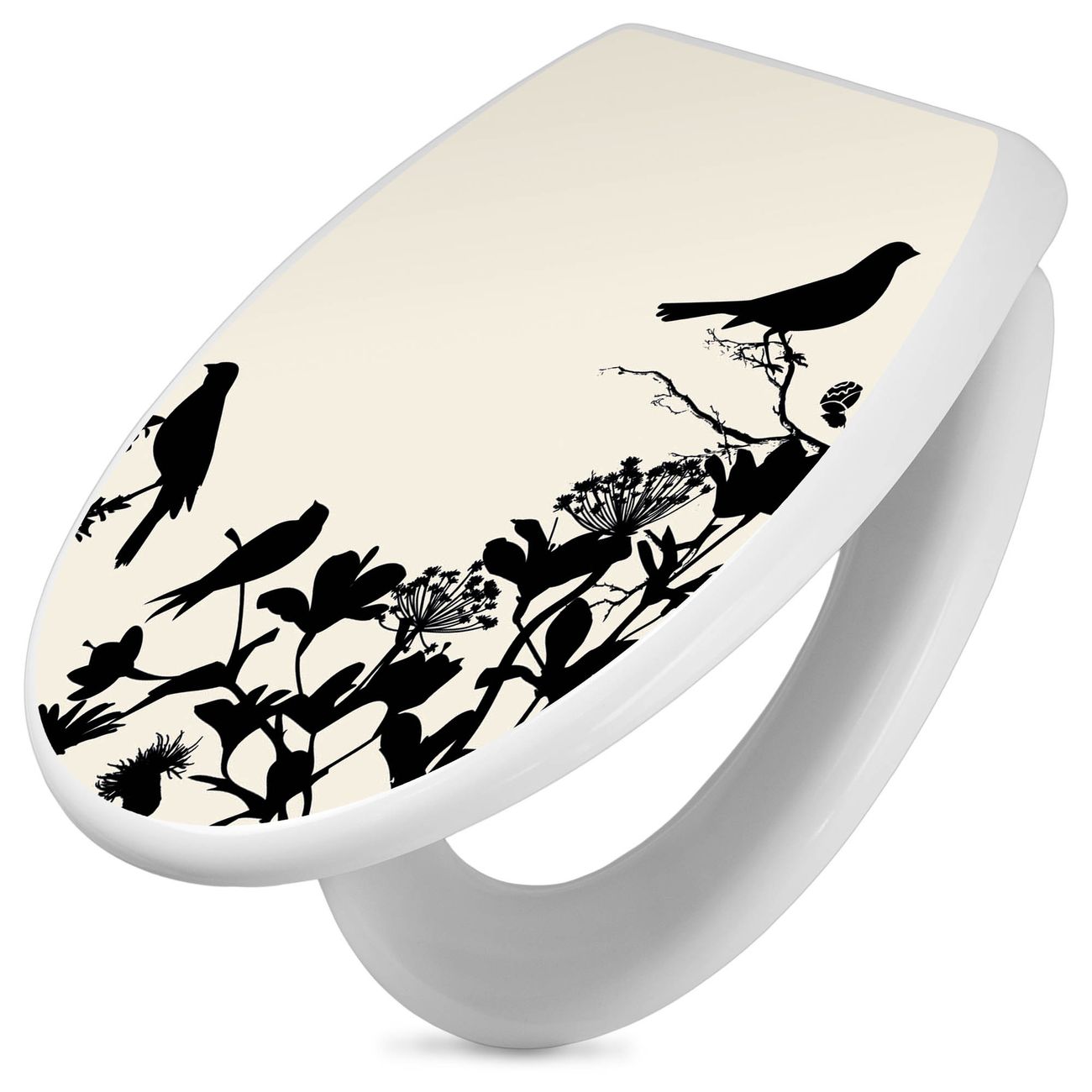 Toilettendeckel weiß mit Absenkautomatik Motiv Vögel Schattenriß