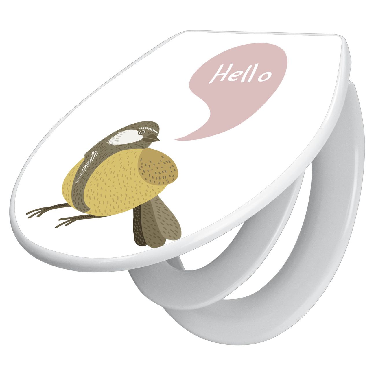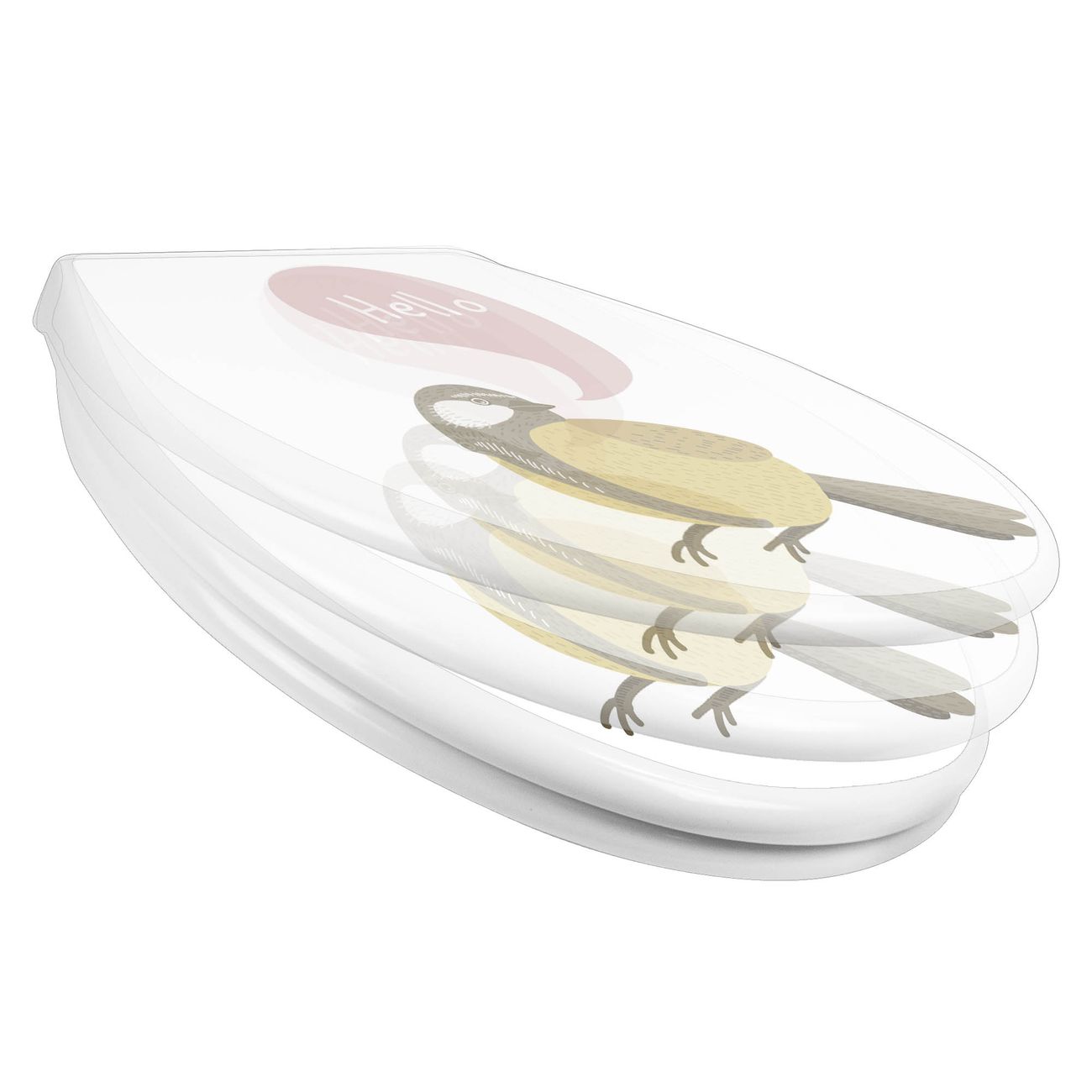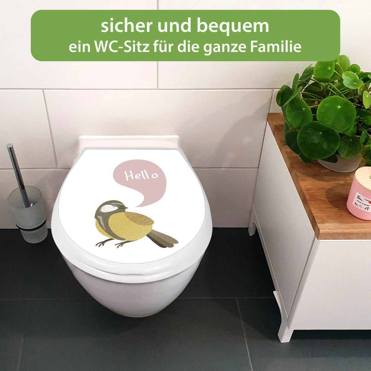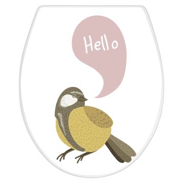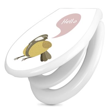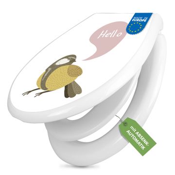 Toilettendeckel weiß mit Absenkautomatik Motiv Vogel mit Sprechblase