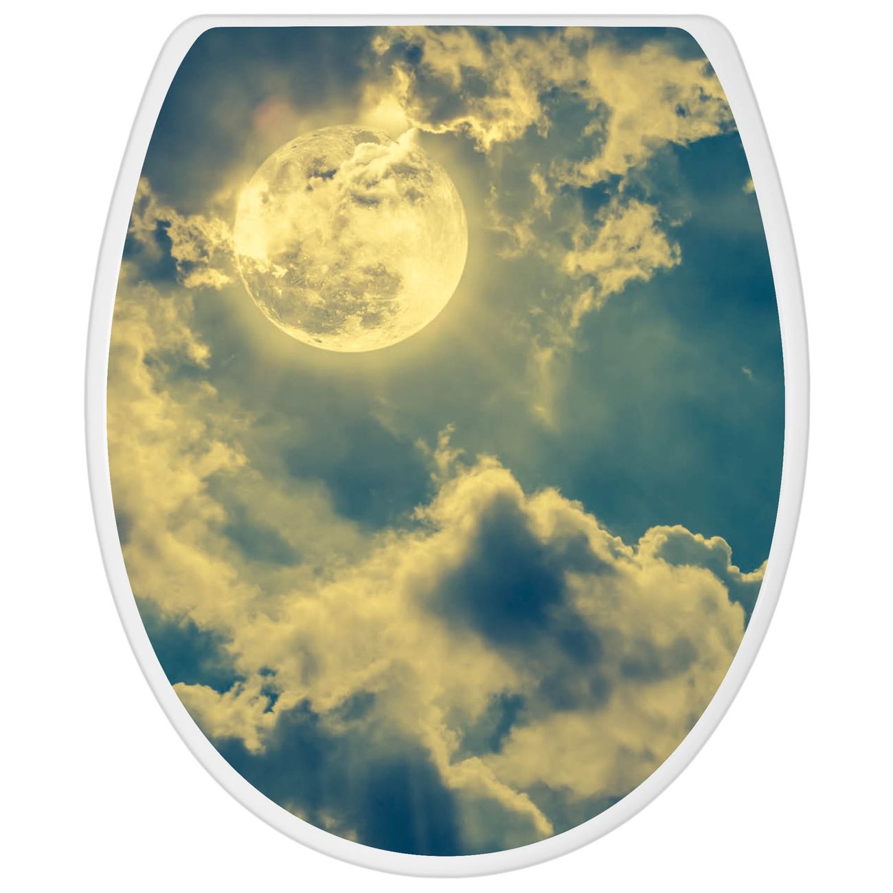 Toilettendeckel weiß mit Absenkautomatik Motiv Vollmond 2