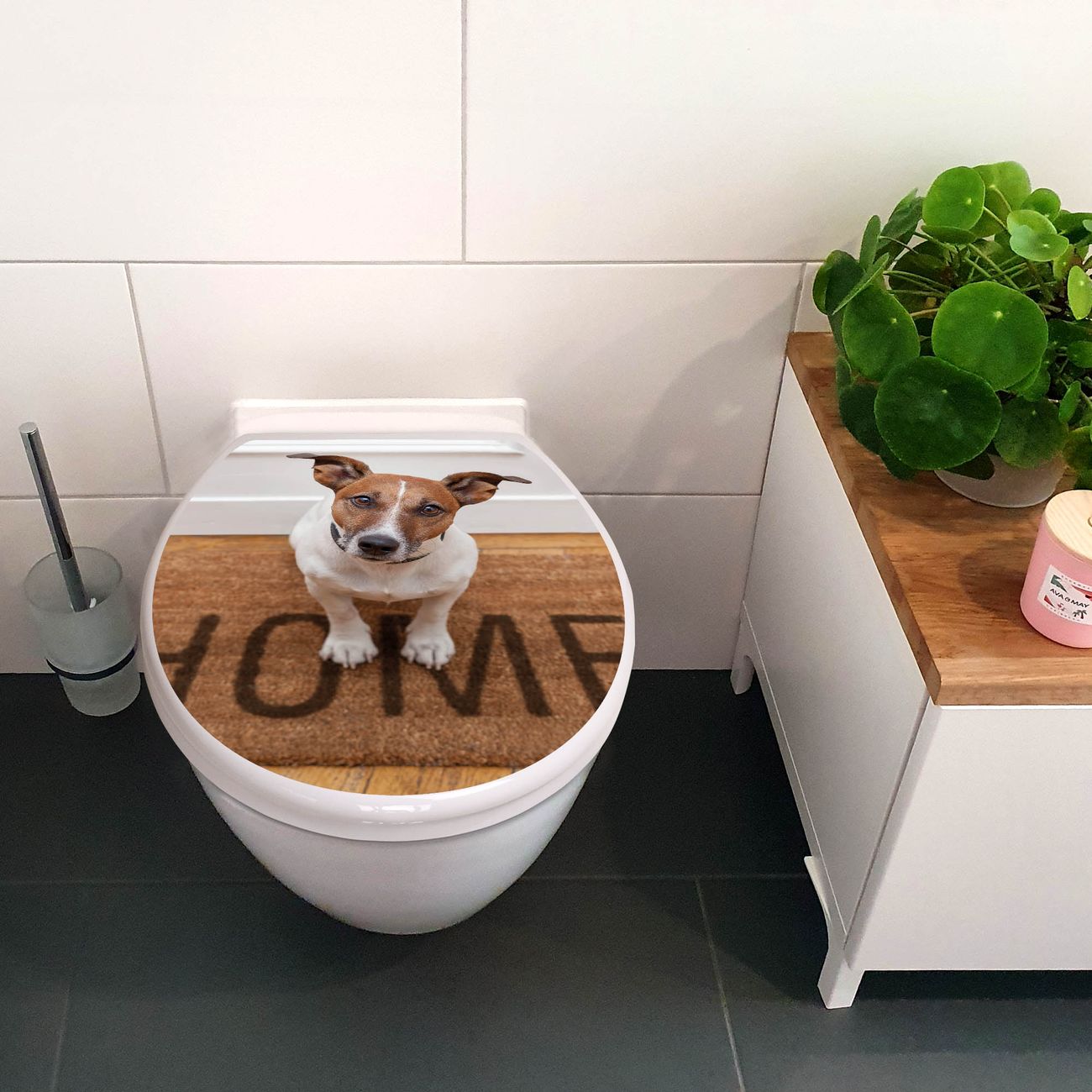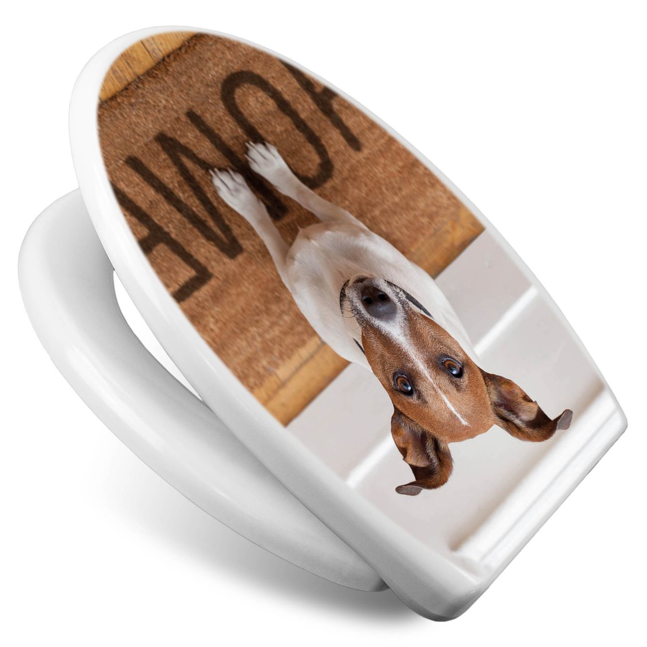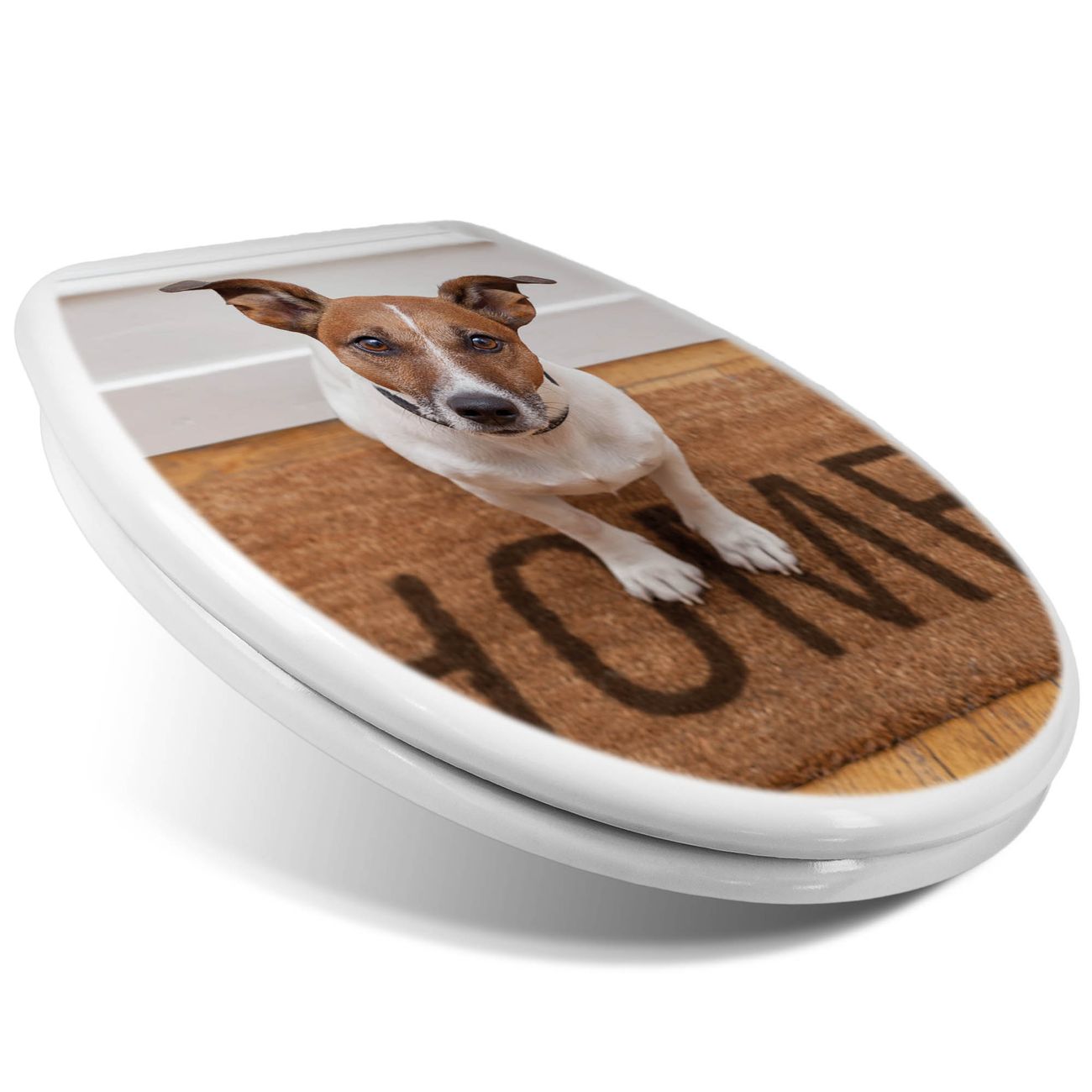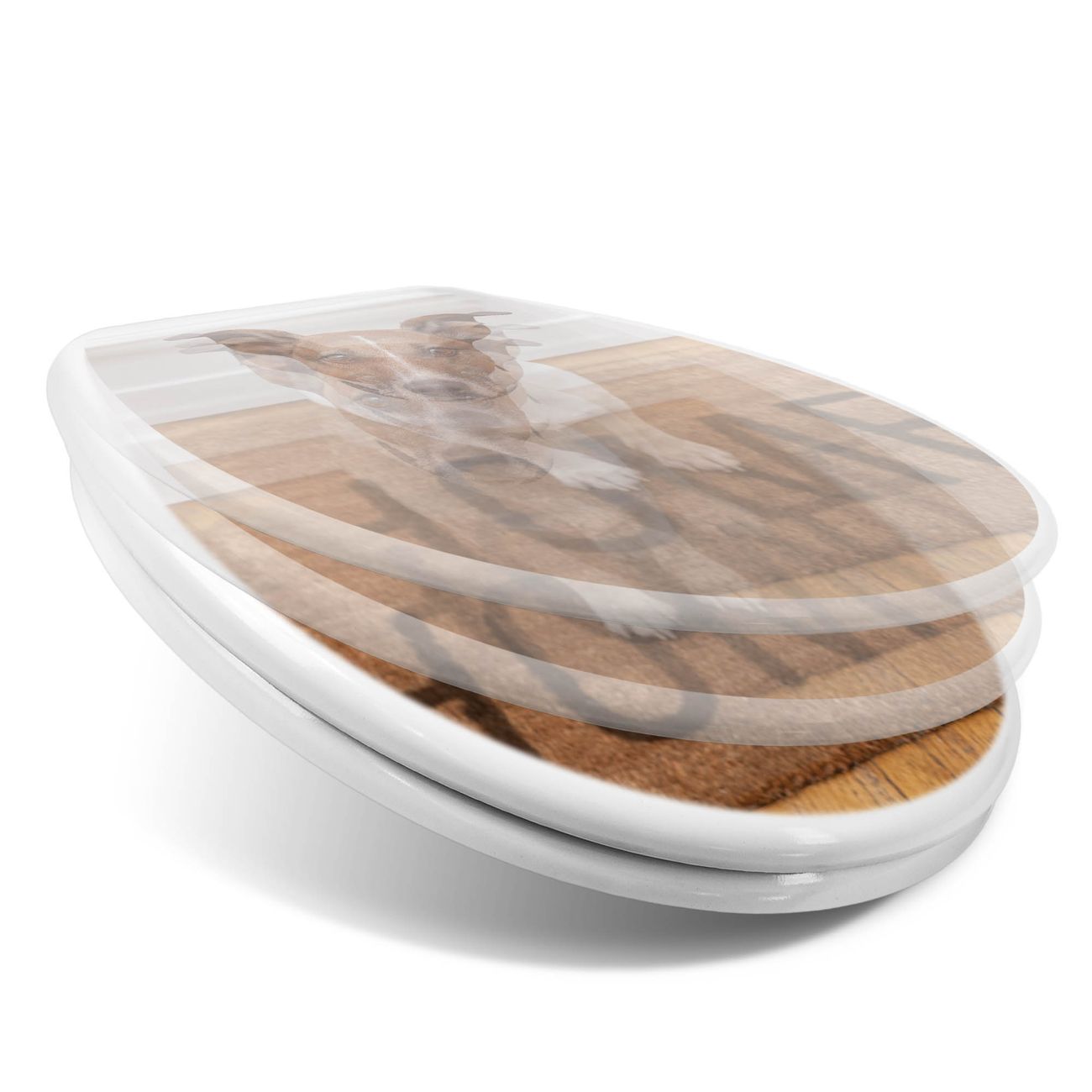 Toilettendeckel weiß mit Absenkautomatik Motiv Wachhund Jack Russel
