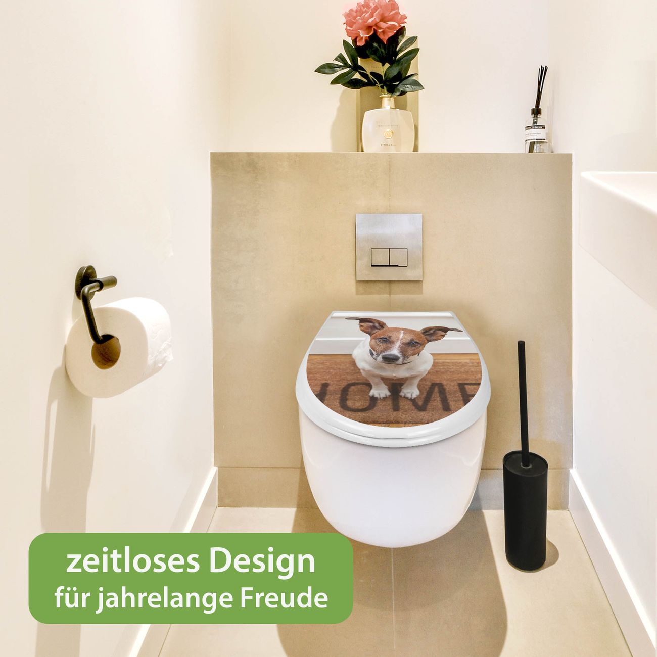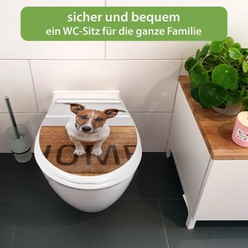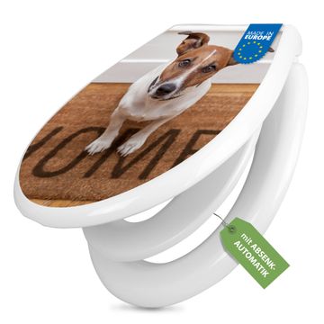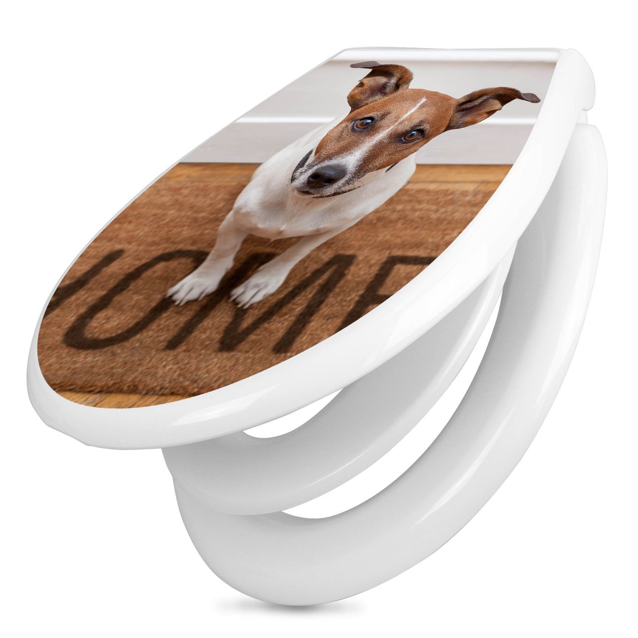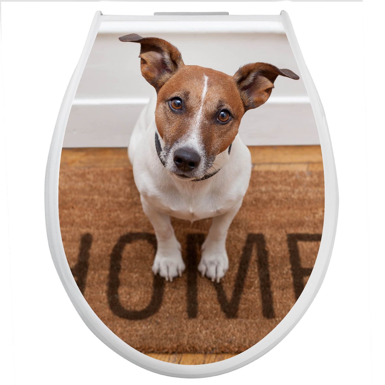 Toilettendeckel weiß mit Absenkautomatik Motiv Wachhund Jack Russel