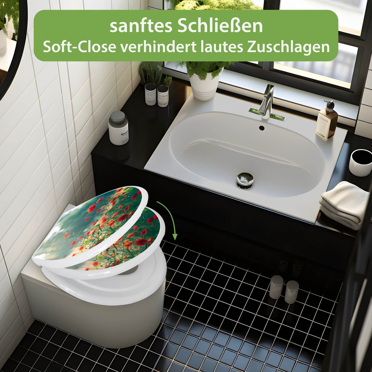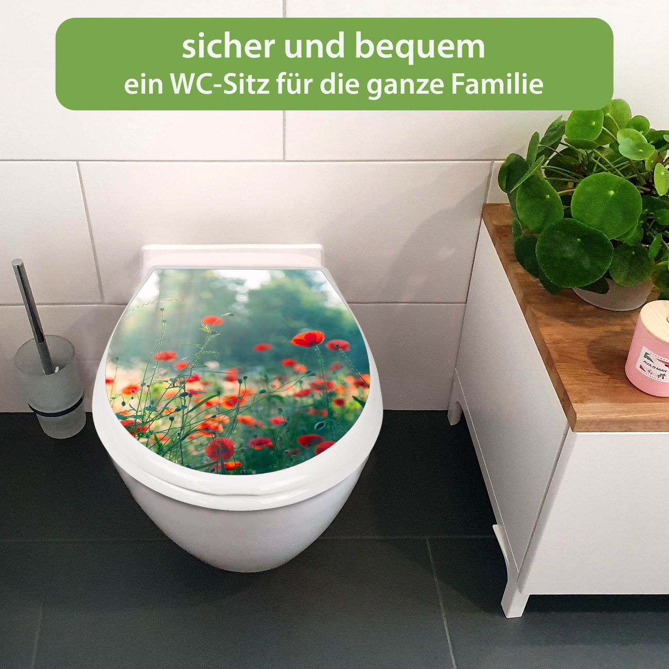 Toilettendeckel weiß mit Absenkautomatik Motiv Waldmohn