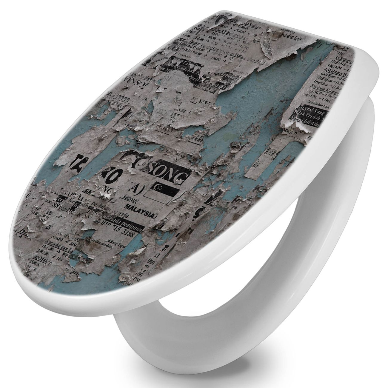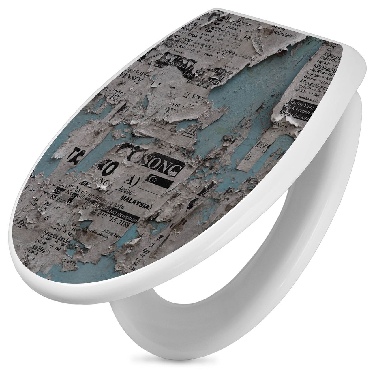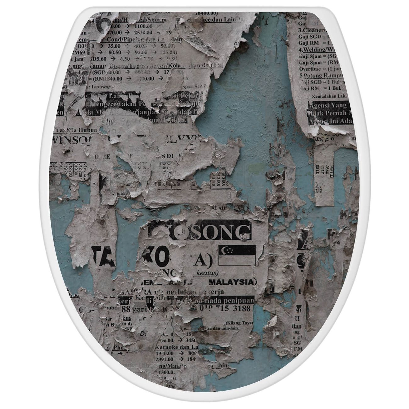 Toilettendeckel weiß mit Absenkautomatik Motiv Wand mit Zeitungen