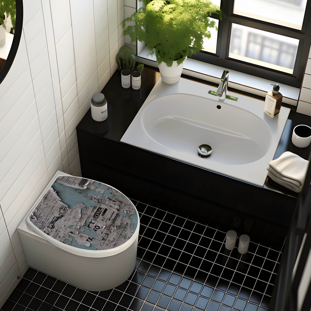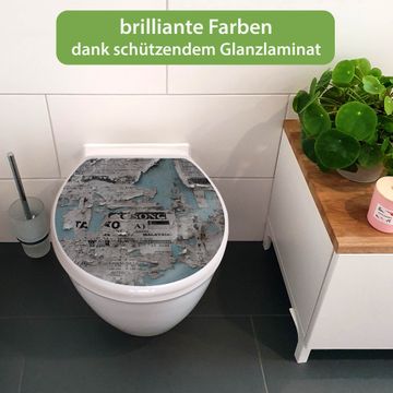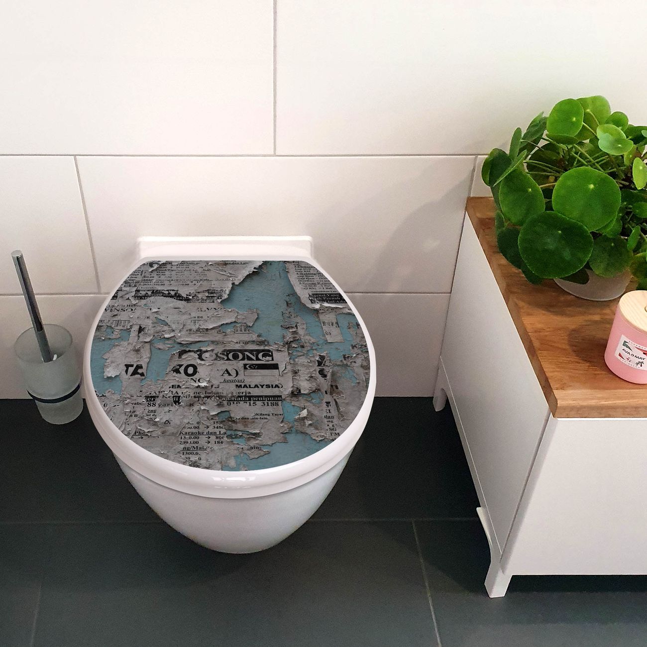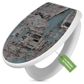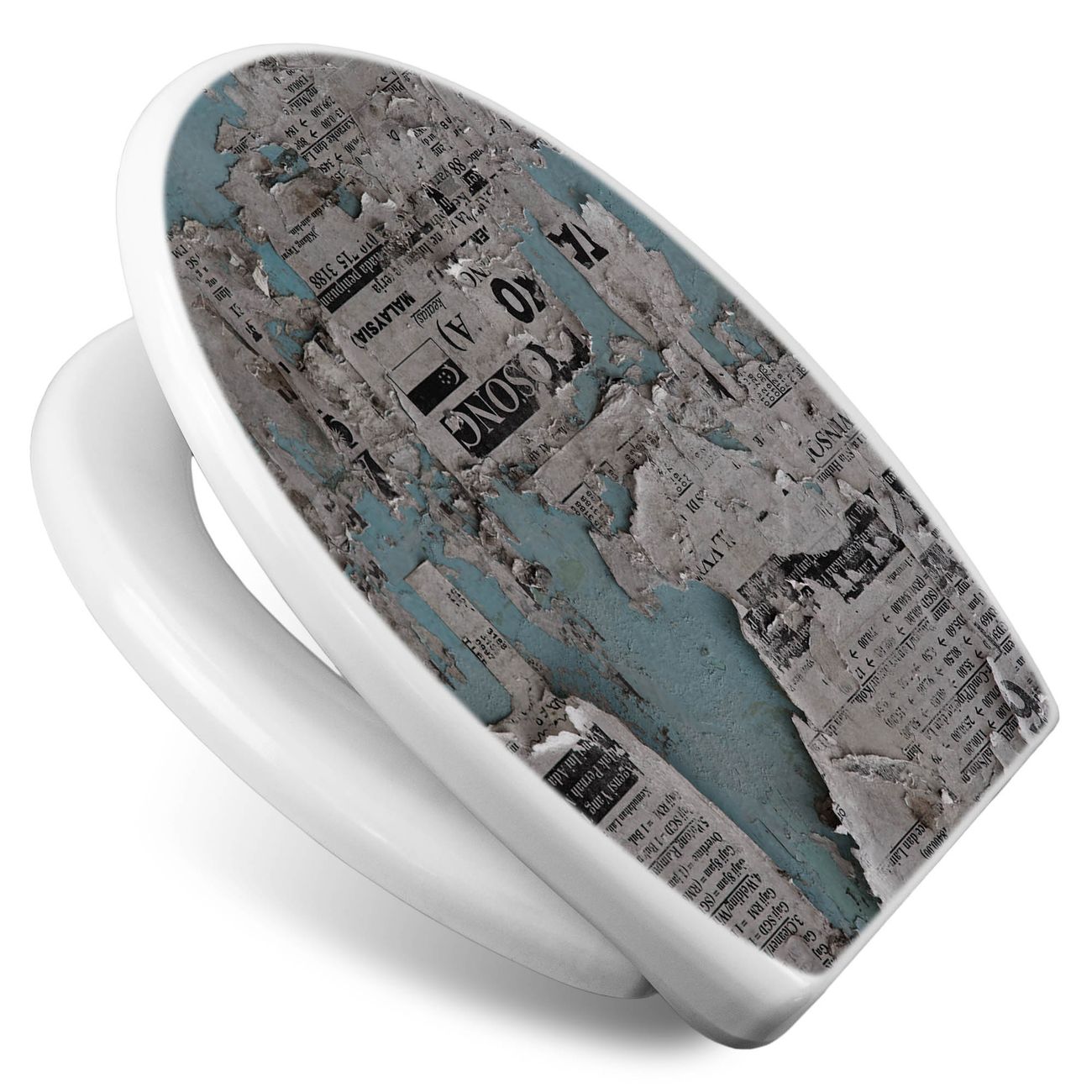 Toilettendeckel weiß mit Absenkautomatik Motiv Wand mit Zeitungen
