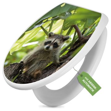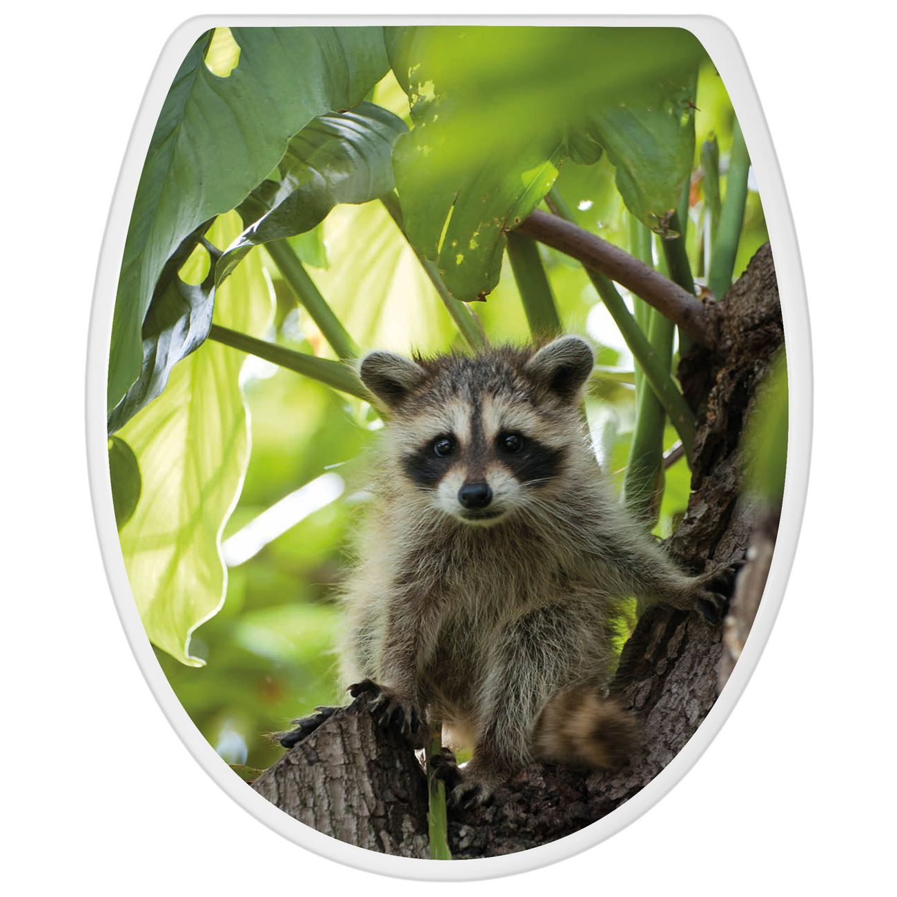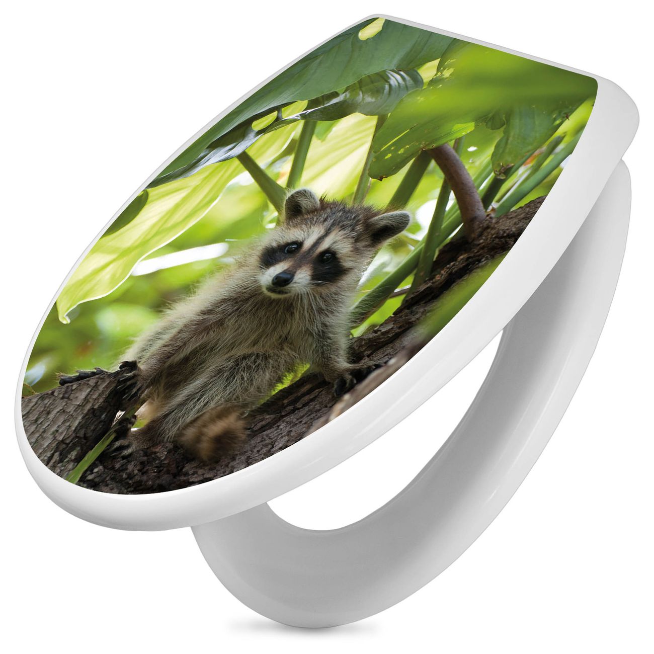 Toilettendeckel weiß mit Absenkautomatik Motiv Waschbär