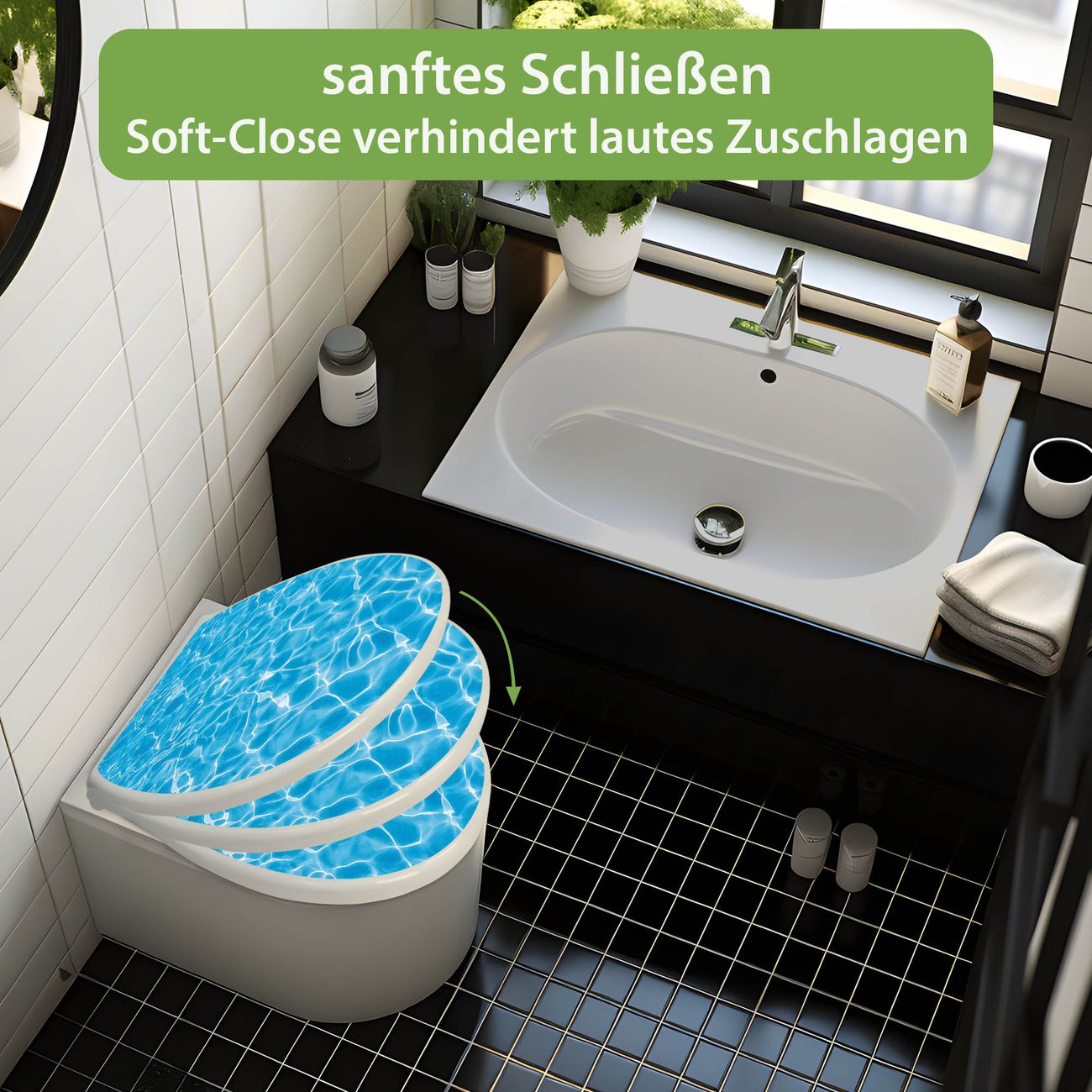 Toilettendeckel weiß mit Absenkautomatik Motiv Wasseroberfläche