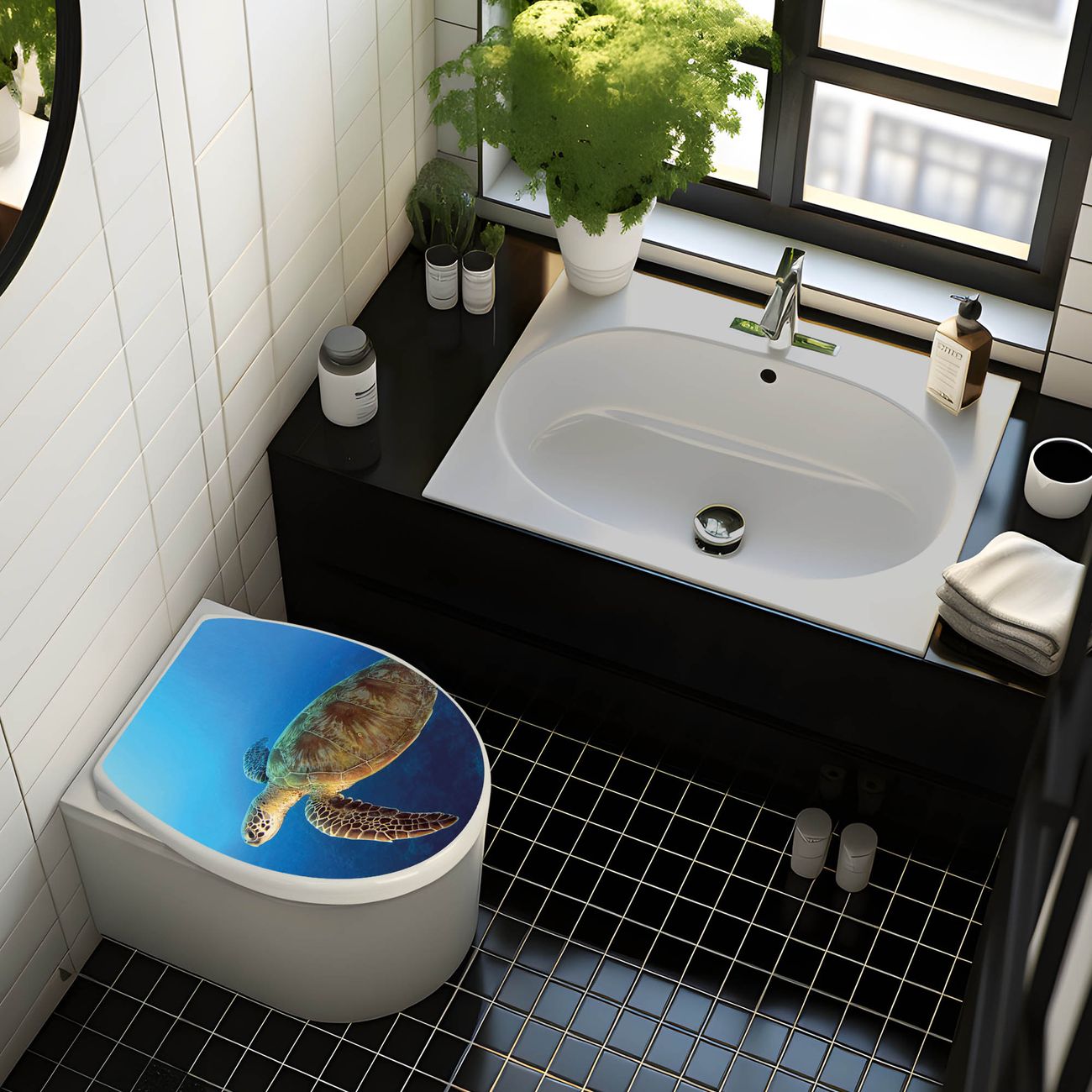 Toilettendeckel weiß mit Absenkautomatik Motiv Wasserschildkröte