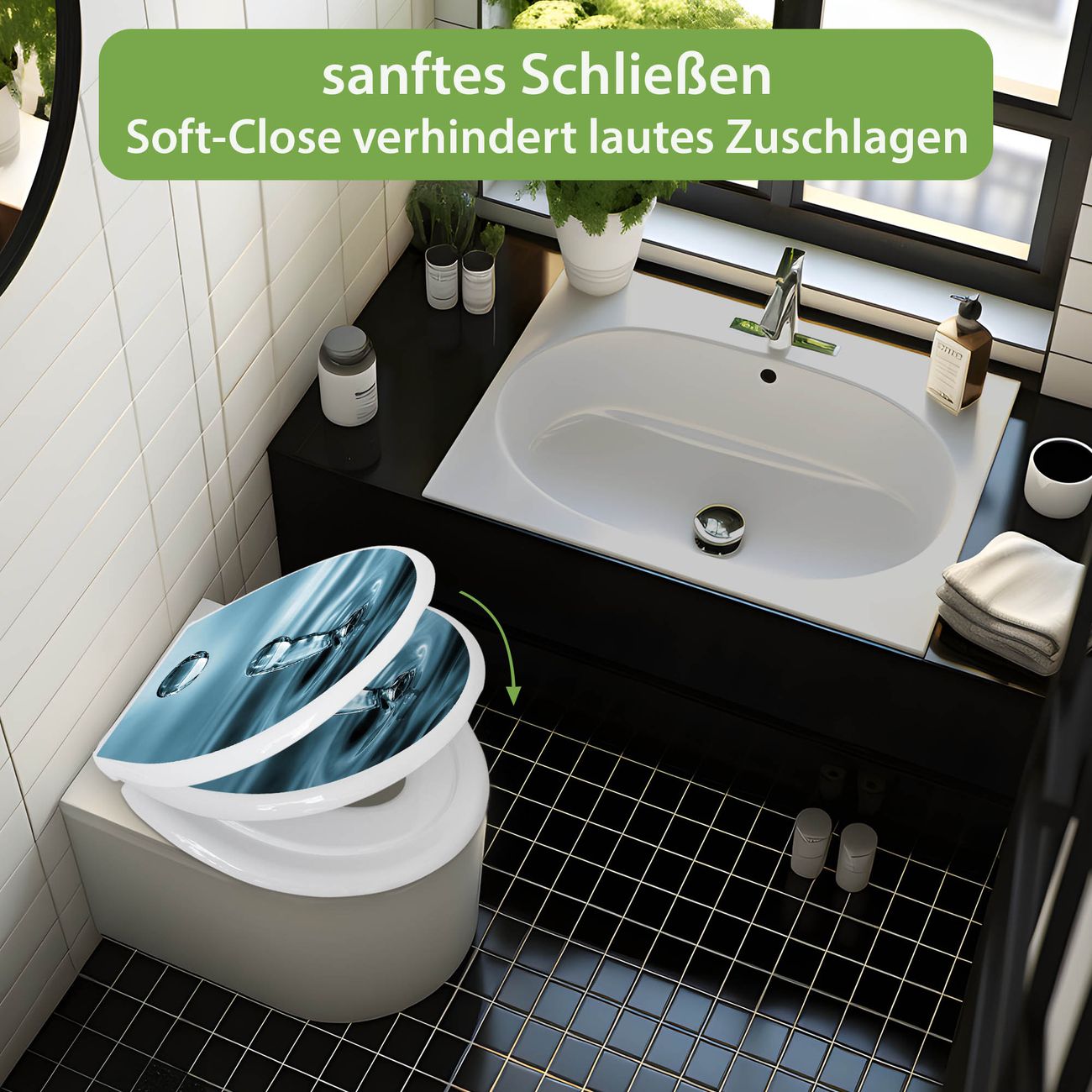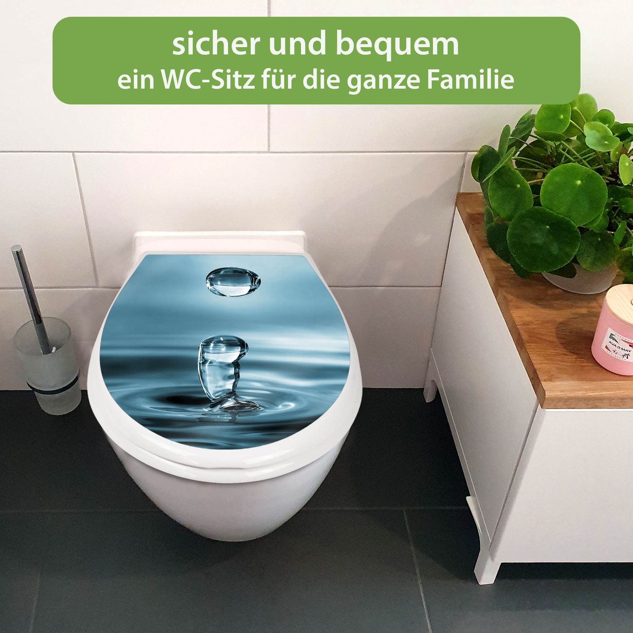 Toilettendeckel weiß mit Absenkautomatik Motiv Wassertropfen
