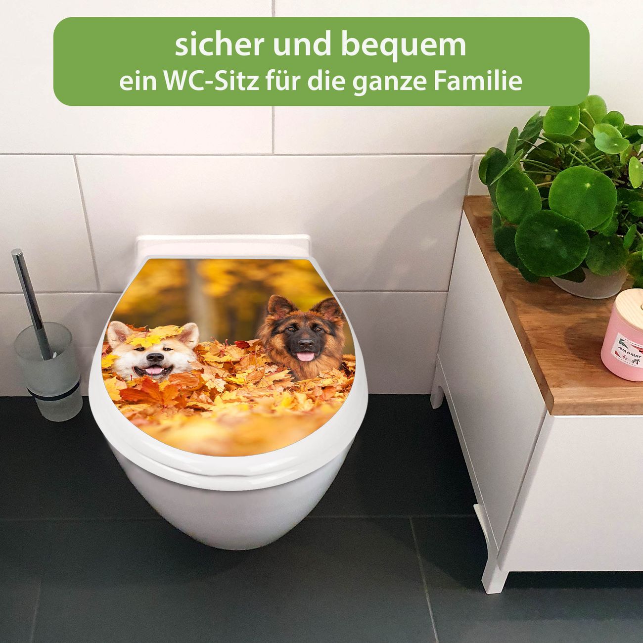 FUNKTION:Mit dem banjado Familien WC Sitz mit Absenkautomatik und dem Motiv Motiv Wayne und Wanda verbinden Sie Design mit Funktionalität. Sie erhalten den Toilettendeckel in bewährt guter Qualität mit Montagematerial passend auf alle Euro-WC-Becken. Die Gesamtgröße beträgt 37,1cm x 44,9cm x 5cm, die Grundfarbe ist weiß.</p> DESIGN:Der Klodeckel in weiß mit Motiv Motiv Wayne und Wanda hat eine ansprechende Optik, eine besondere Form und ist sehr stabil. Das Motiv besteht aus einer farbbrillianten Motivfolie, die durch ein Schutzlaminat zusätzlich vor Kratzern schützt. Der integrierte Kindersitz fügt sich harmonisch ein. DETAILS:Der Toilettensitz mit Soft Close besteht aus hochwertigem Polypropylen, ist geruchlos, ungiftig und kann mit handelsüblicher Seife gereinigt werden. Die Montage kann von von oben oder von unten erfolgen und ist kinderleicht. NUTZEN:Mit Hilfe der detaillierten Aufbauanleitung ermöglichen wir eine schnelle und unkomplizierte Montage. Die banjado Klobrille ist universell geeignet für alle Euro-WC-Schüsseln. Der Kindersitz kann unkompliziert entfernt werden. BANJADO:Ihr WC-Deckel wird in Sachsen in einer kleinen Manufaktur von Hand veredelt. Die Motivfolie ist lösungsmittelfrei und schutzlaminiert für einen langen Halt. Wir wünschen viel Freude bei der Auswahl eines schönen Motivs.