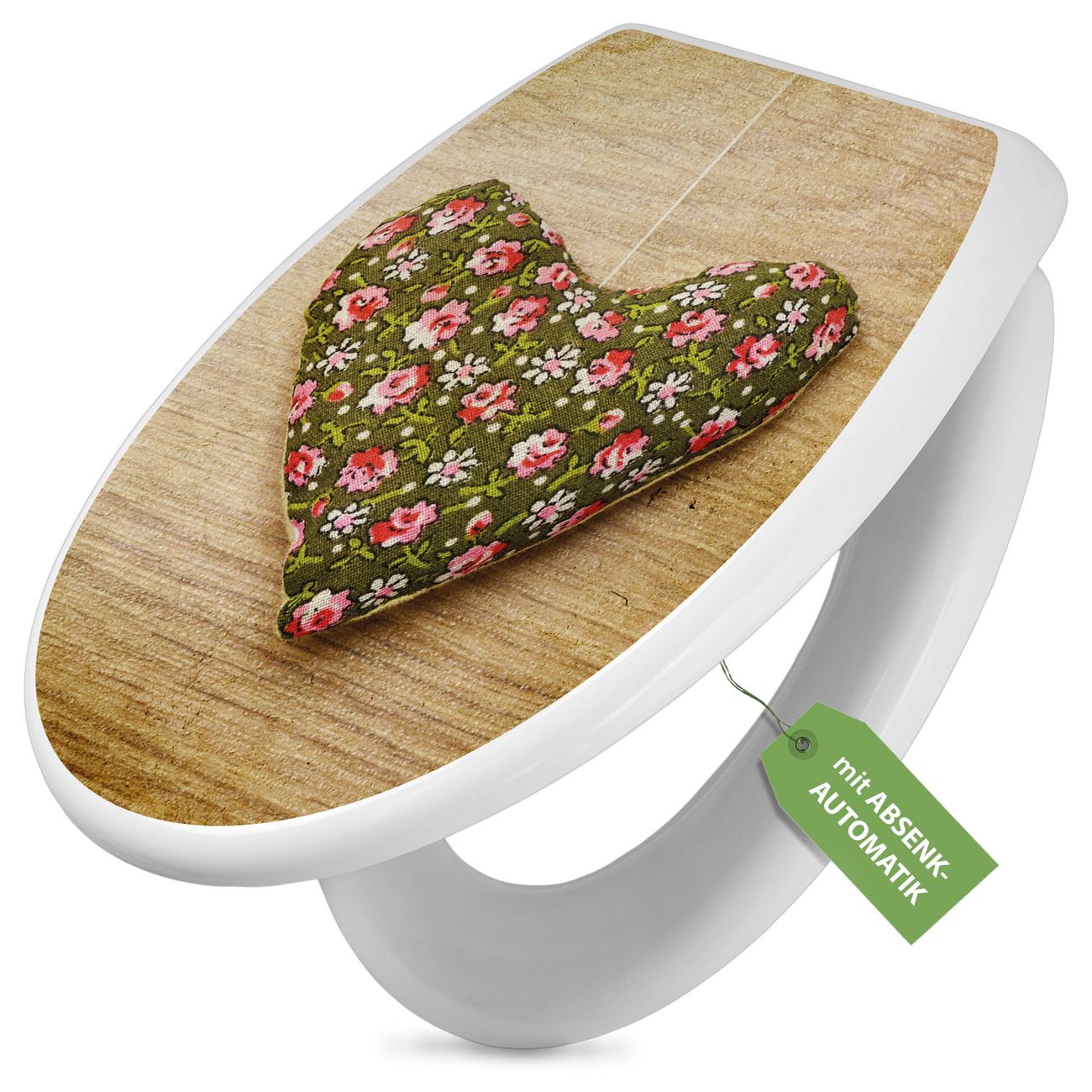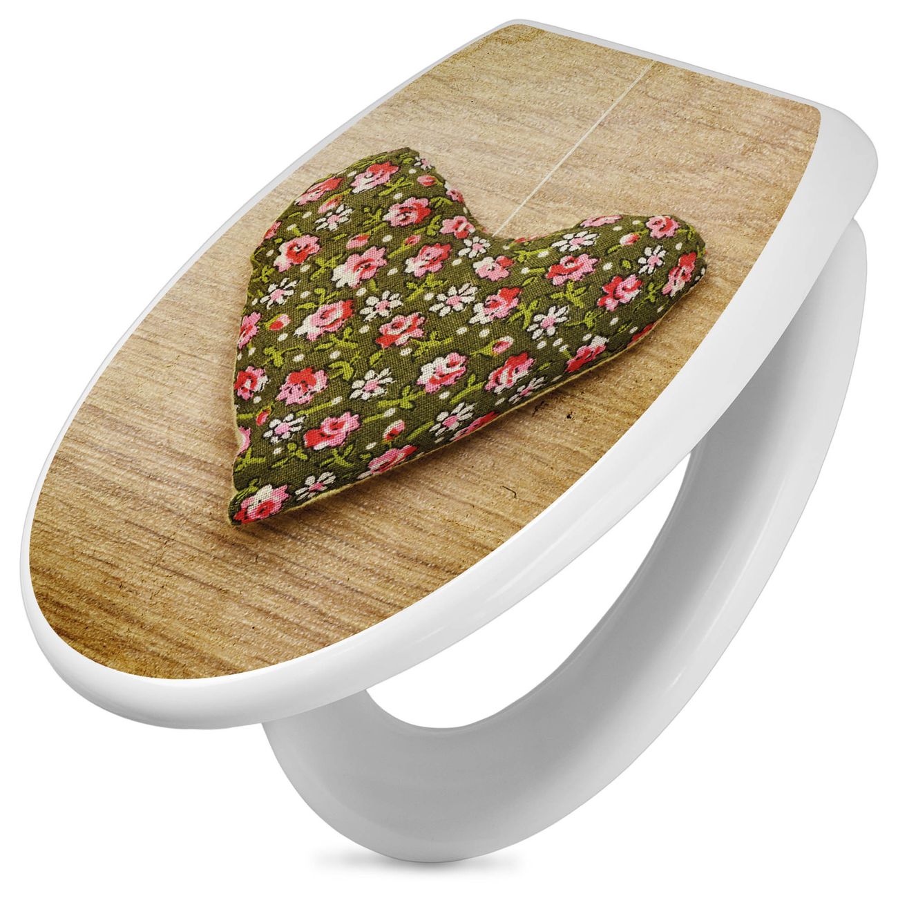 Toilettendeckel weiß mit Absenkautomatik Motiv Weiches Herz