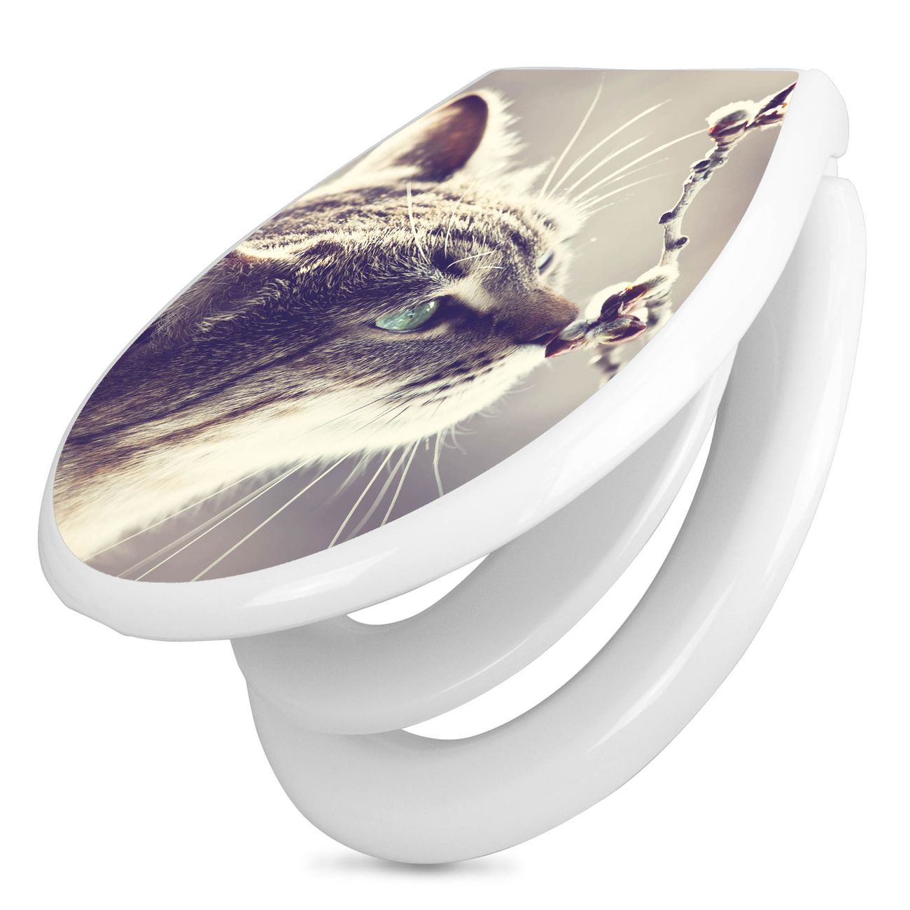 Toilettendeckel weiß mit Absenkautomatik Motiv Weidenkätzchen