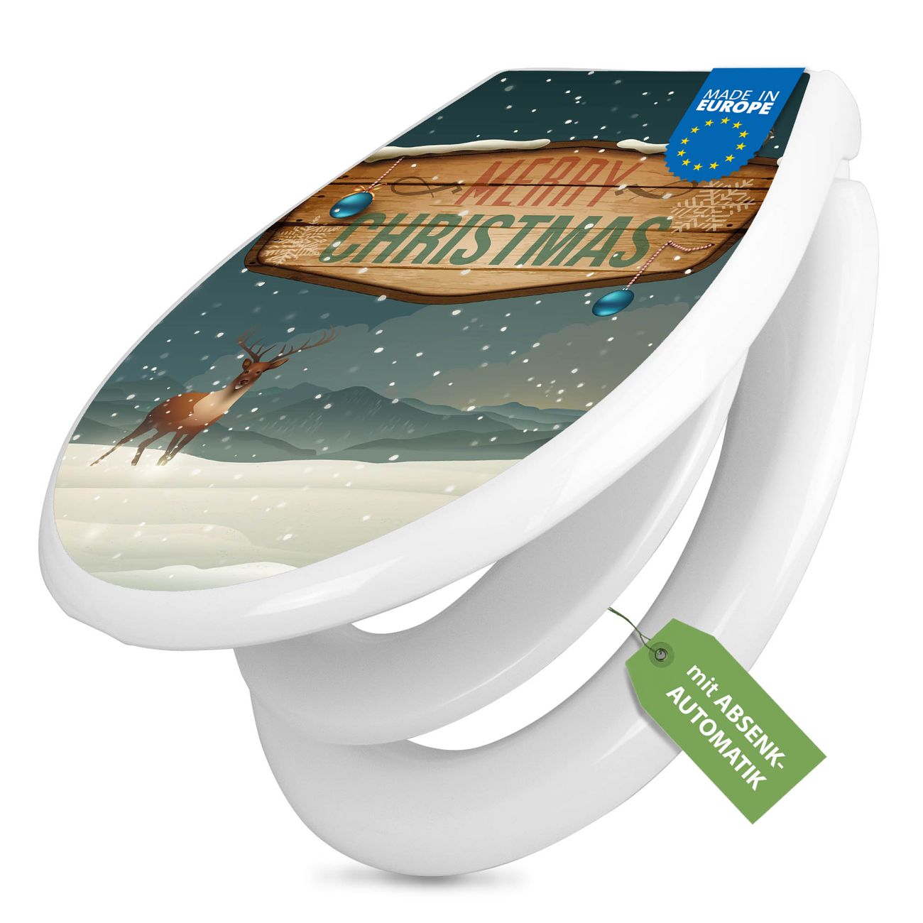 Toilettendeckel weiß mit Absenkautomatik Motiv Weihnachtsland