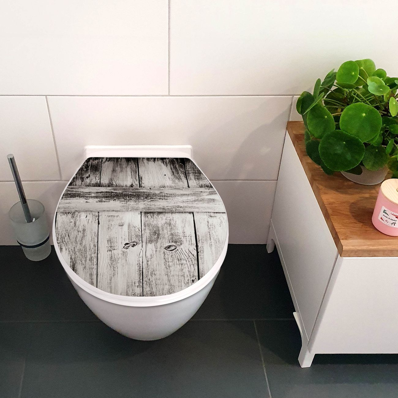 Toilettendeckel weiß mit Absenkautomatik Motiv weiße Bretter