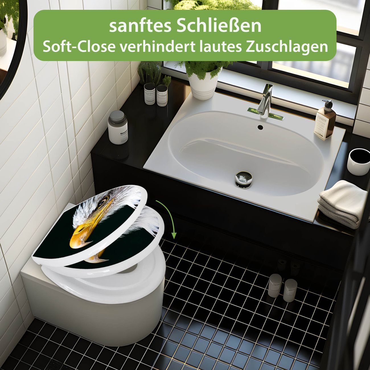 Toilettendeckel weiß mit Absenkautomatik Motiv Weißkopfseeadler