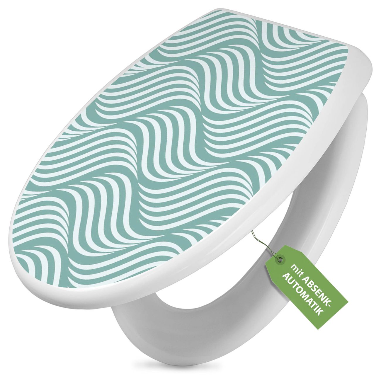 Toilettendeckel weiß mit Absenkautomatik Motiv Wellen Lindgrün