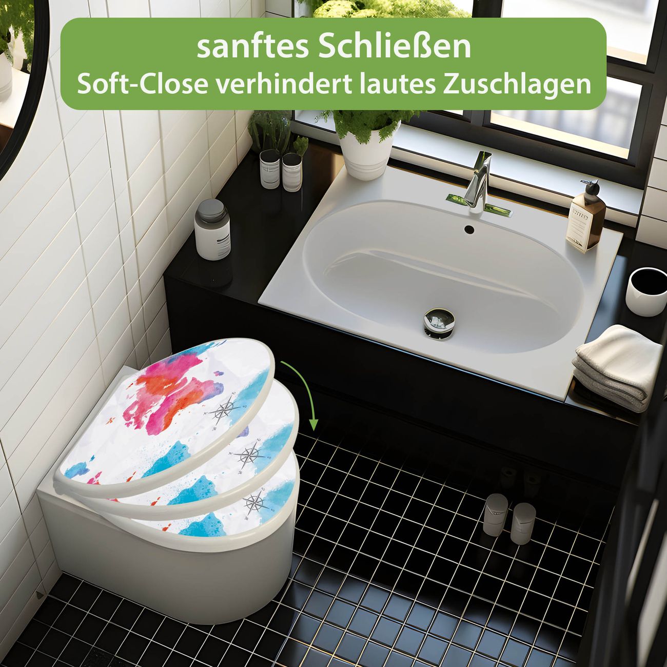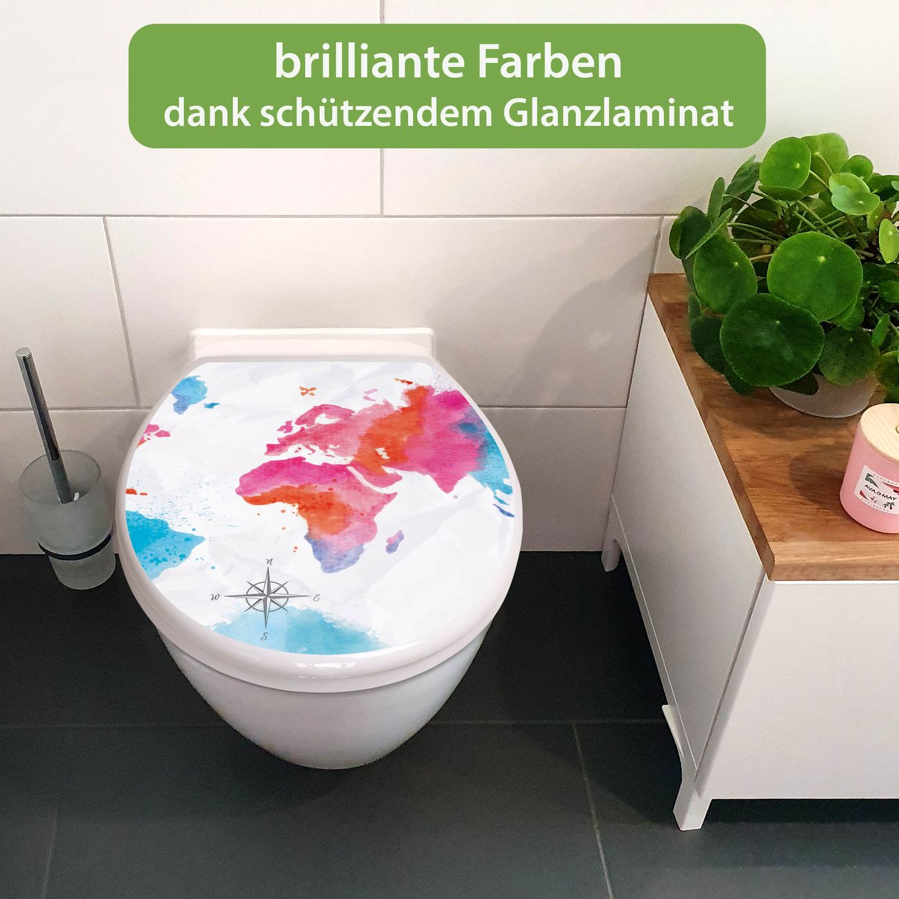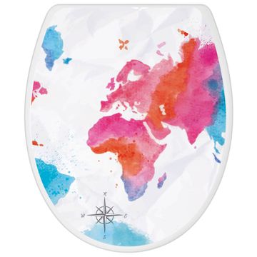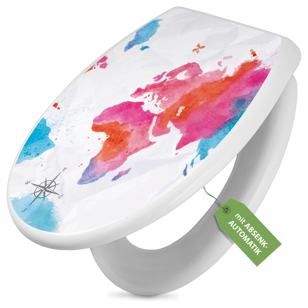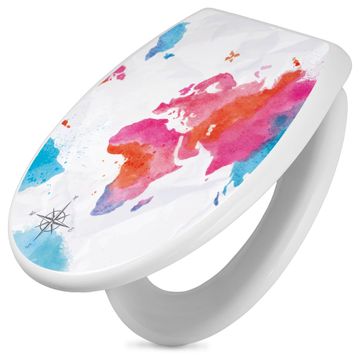 Toilettendeckel weiß mit Absenkautomatik Motiv Weltkarte pastell