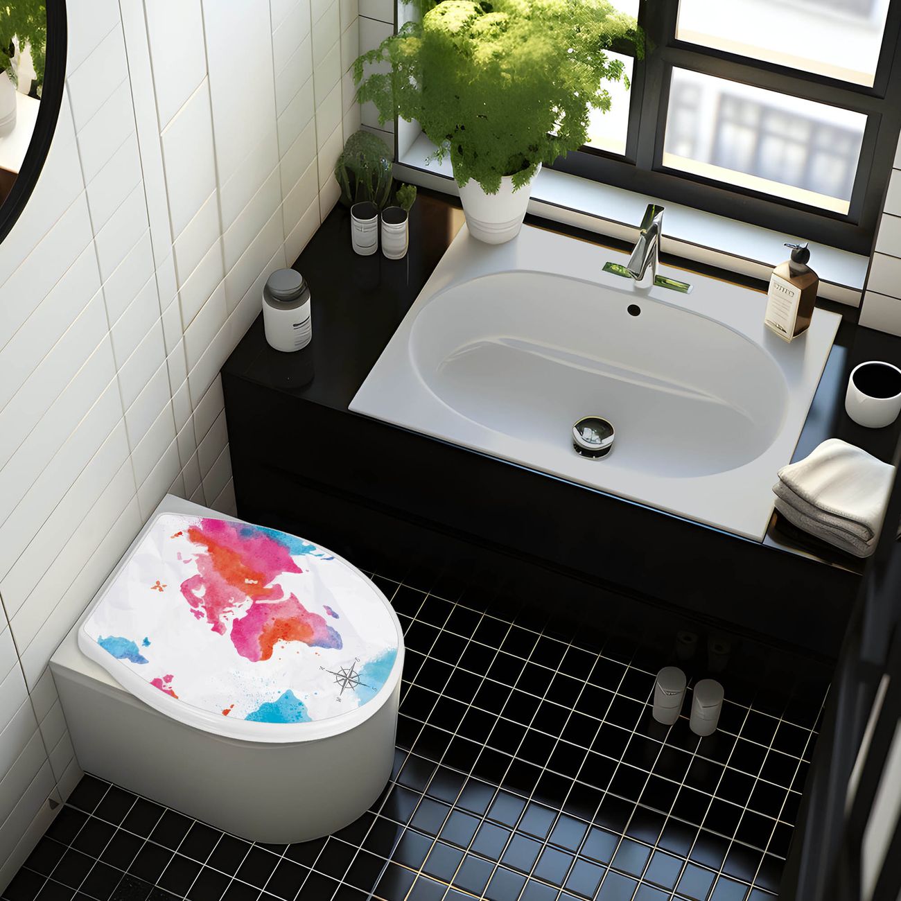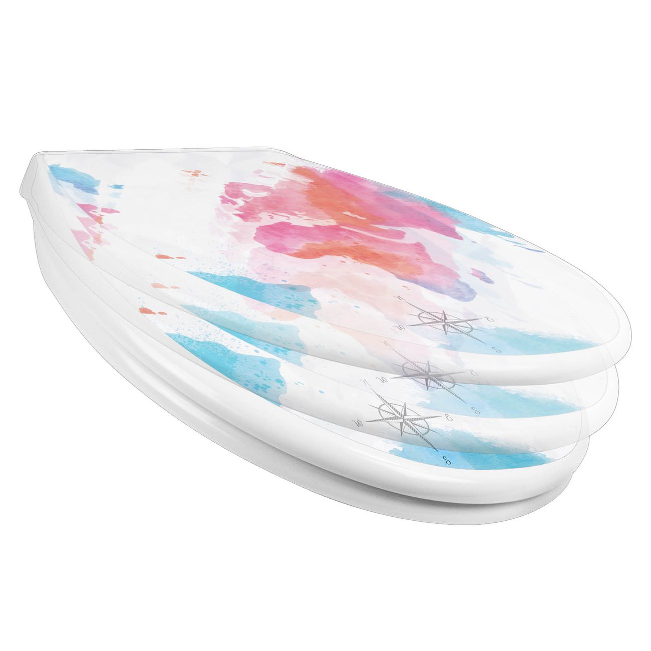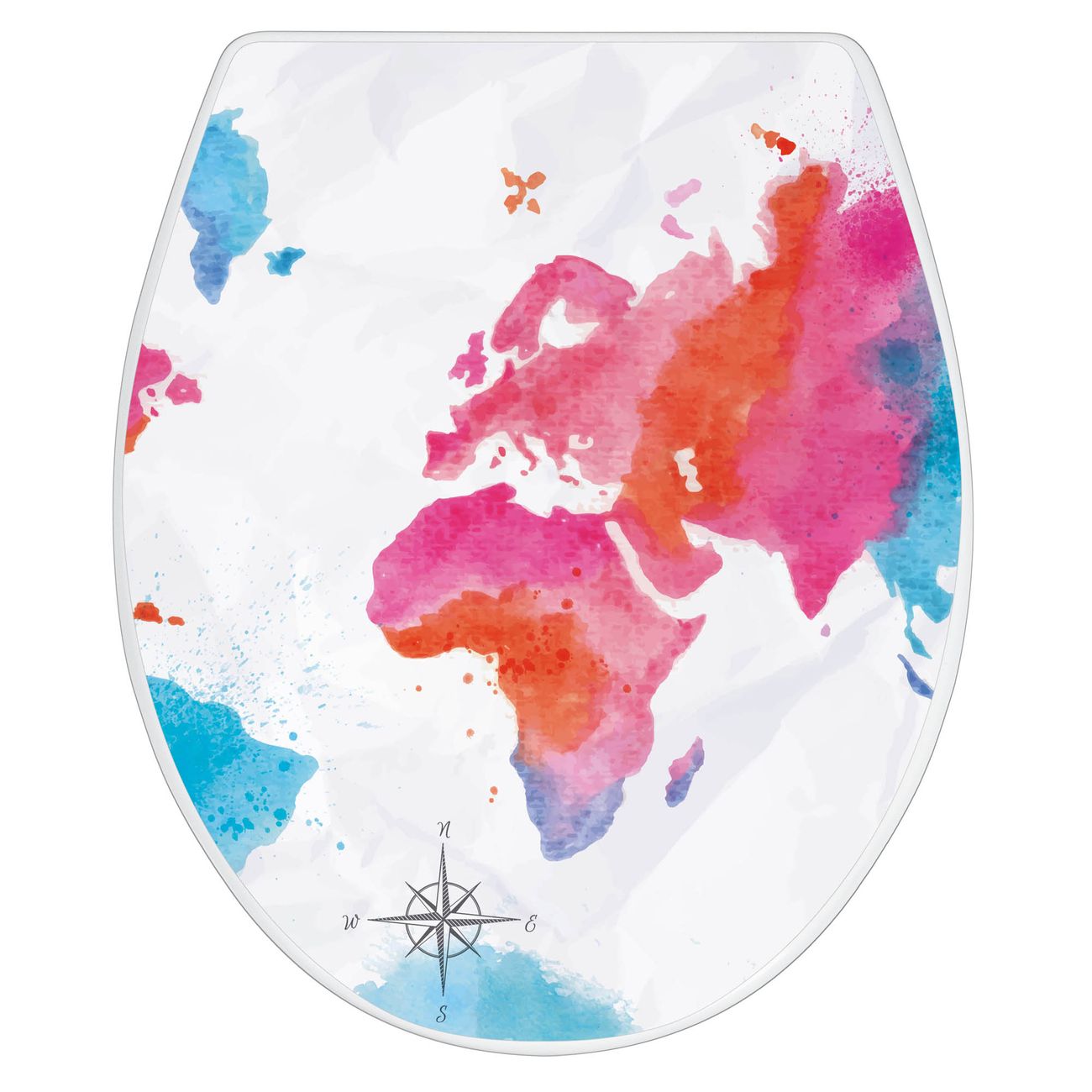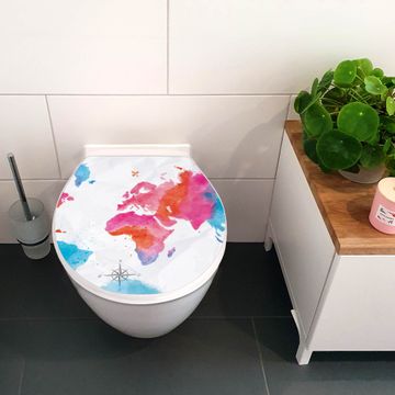 Toilettendeckel weiß mit Absenkautomatik Motiv Weltkarte pastell