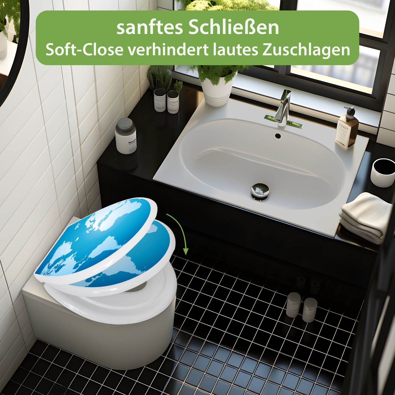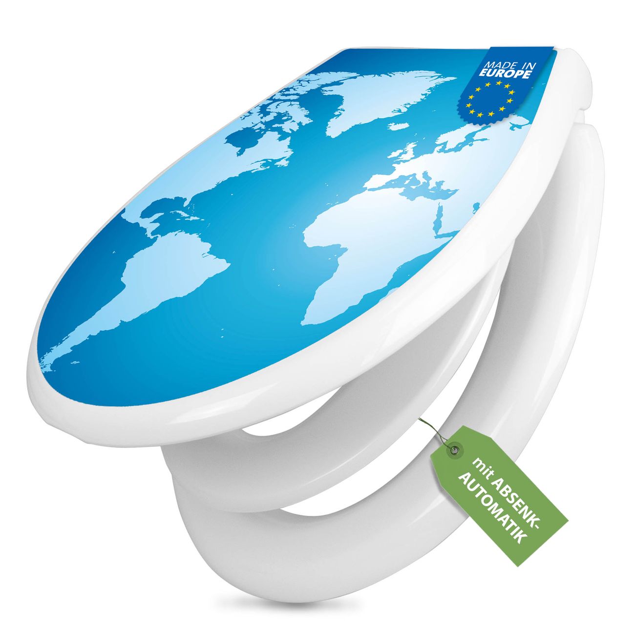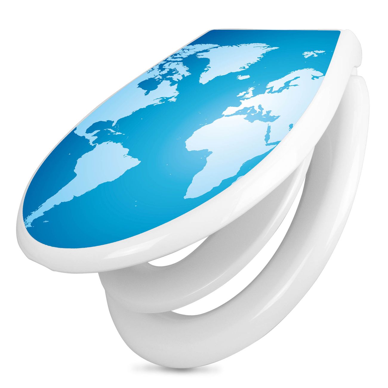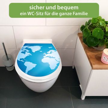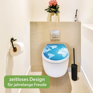 Toilettendeckel weiß mit Absenkautomatik Motiv Weltkarte