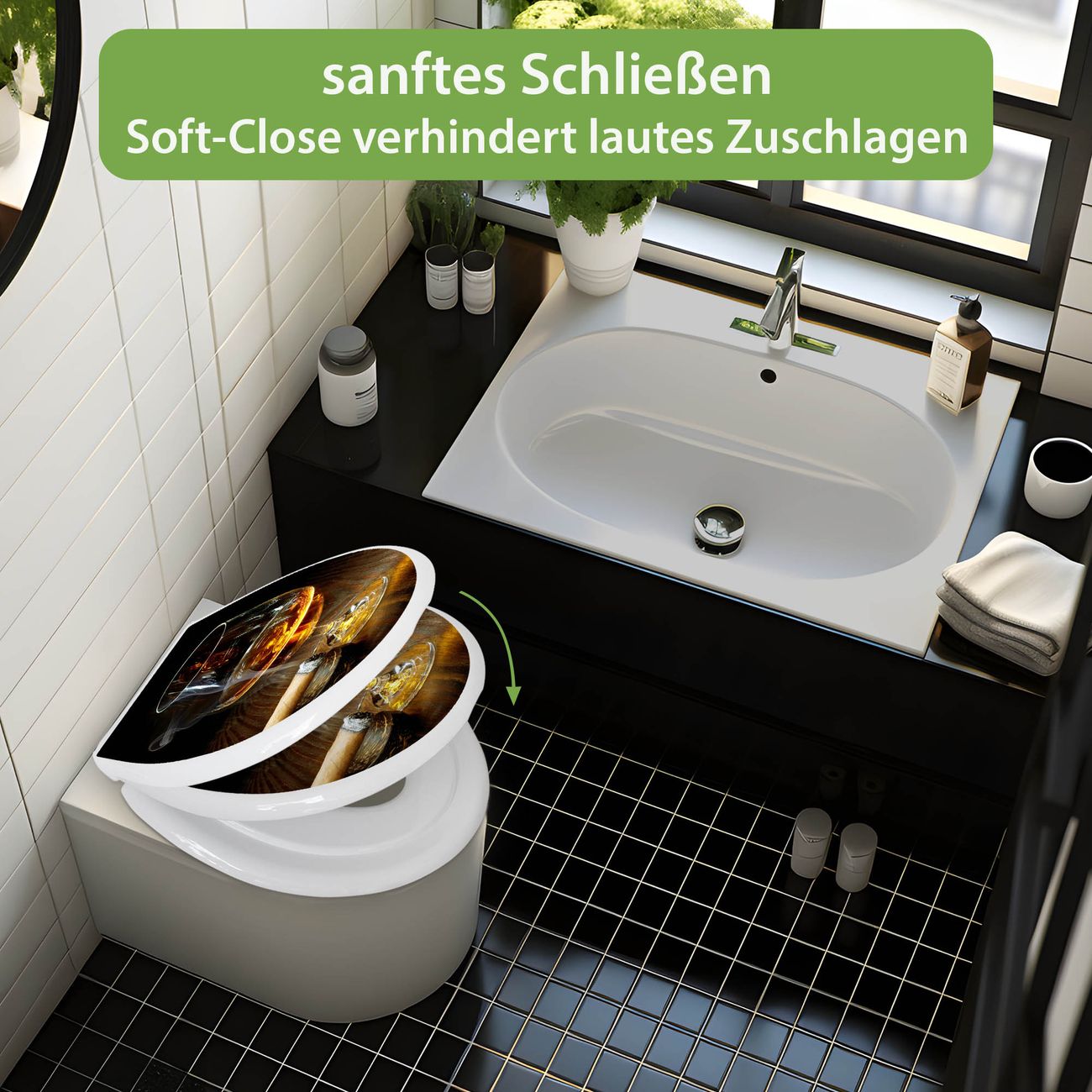 Toilettendeckel weiß mit Absenkautomatik Motiv Whiskey & Cigar