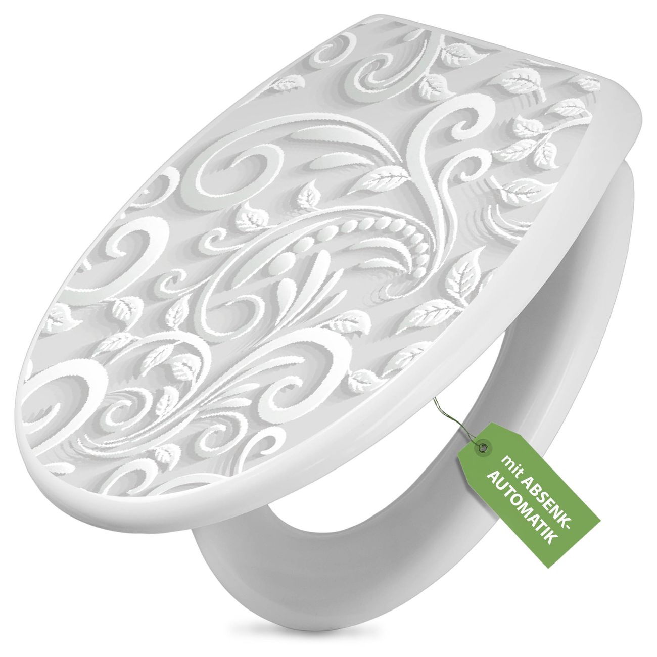 Toilettendeckel weiß mit Absenkautomatik Motiv White Swirl