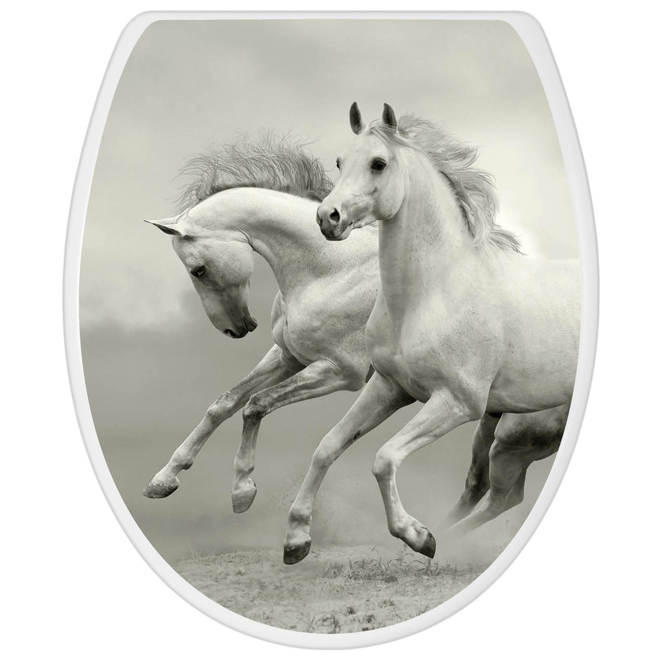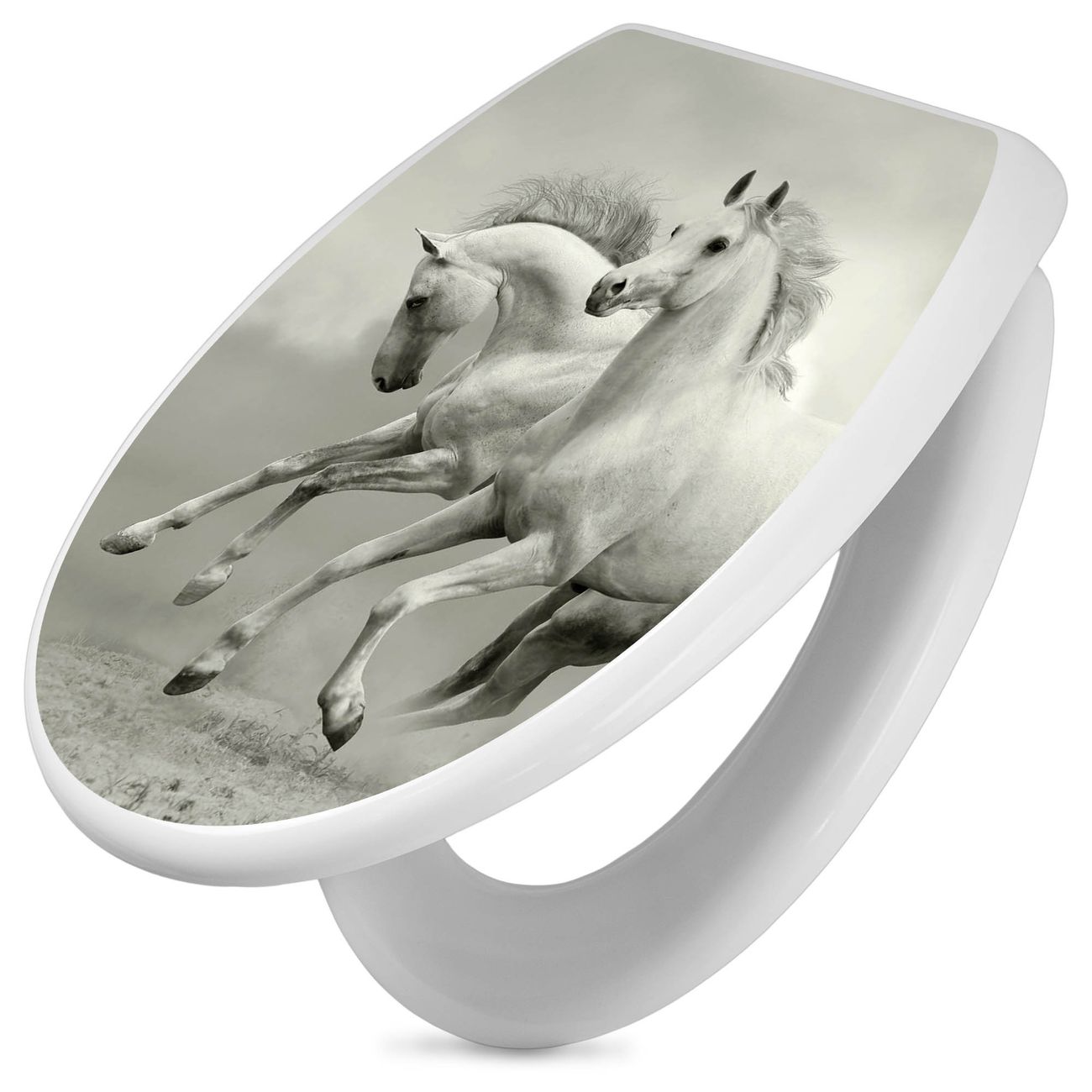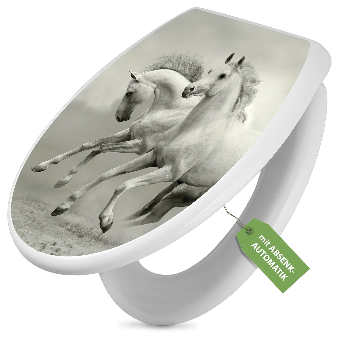 Toilettendeckel weiß mit Absenkautomatik Motiv Wilde Pferde SW
