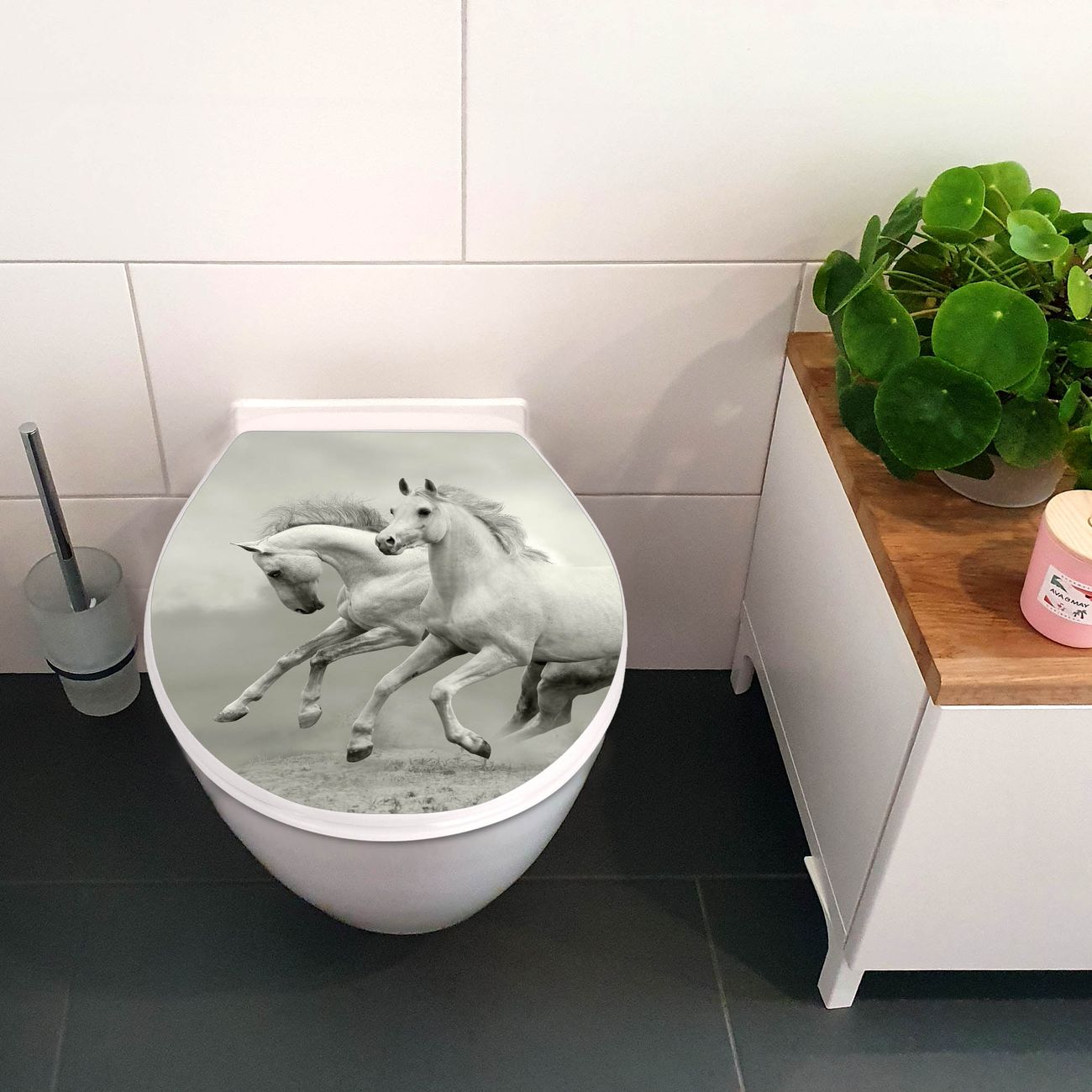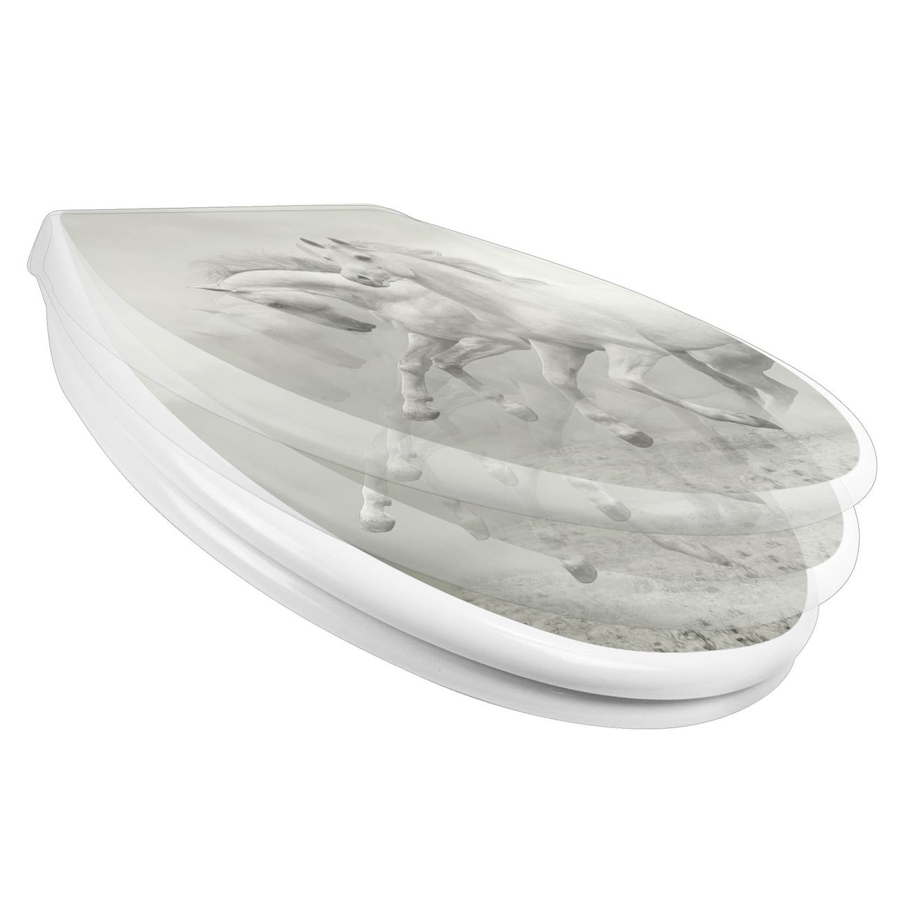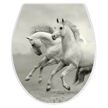 Toilettendeckel weiß mit Absenkautomatik Motiv Wilde Pferde SW