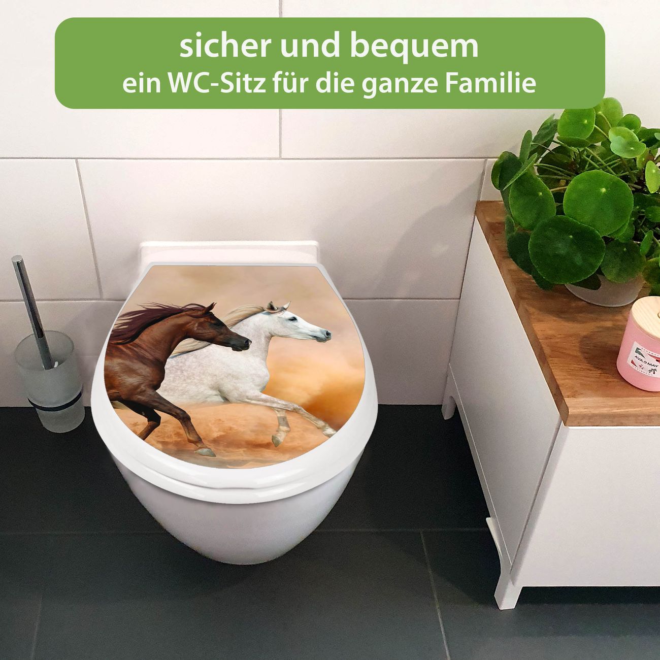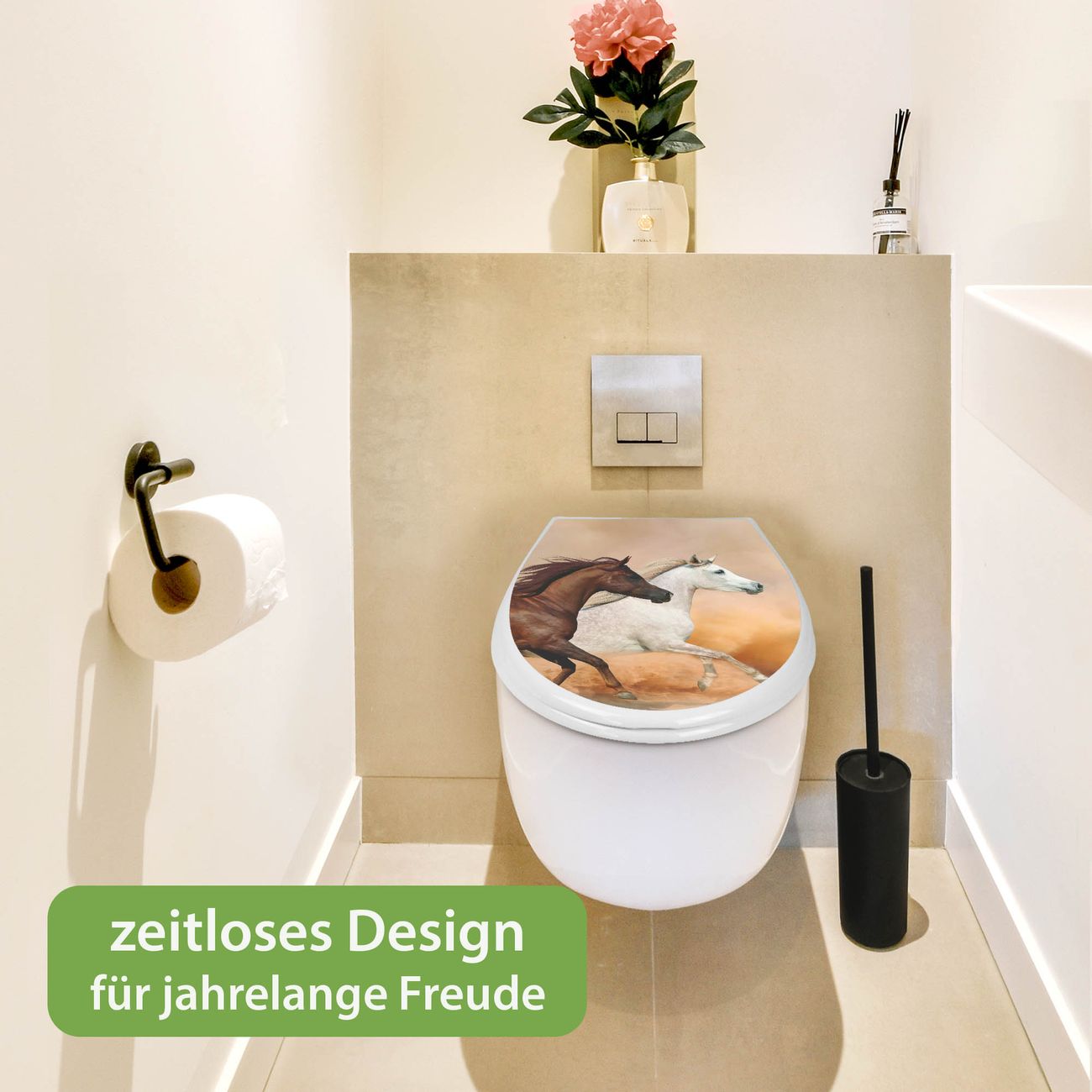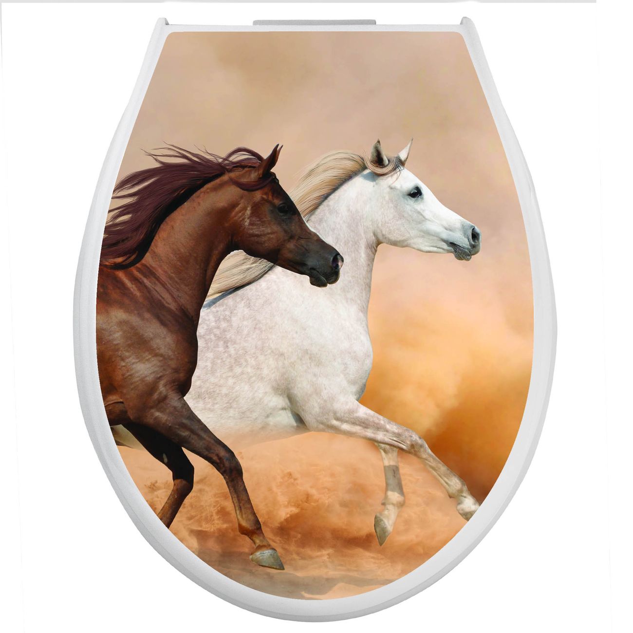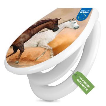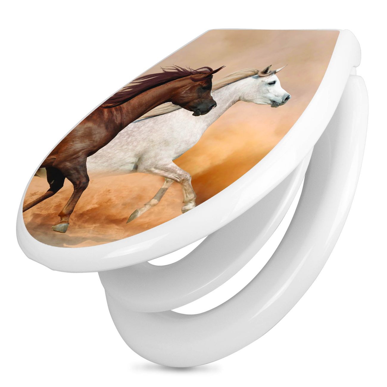 Toilettendeckel weiß mit Absenkautomatik Motiv Wilde Pferde