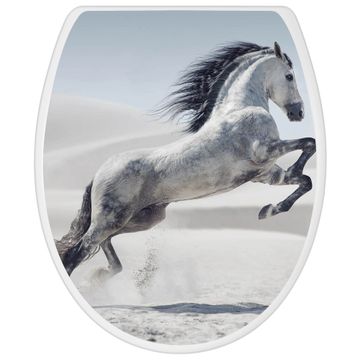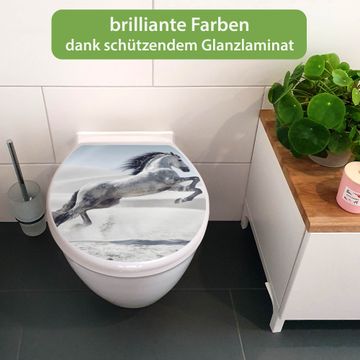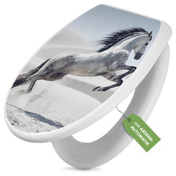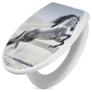 Toilettendeckel weiß mit Absenkautomatik Motiv Wildes Pferd