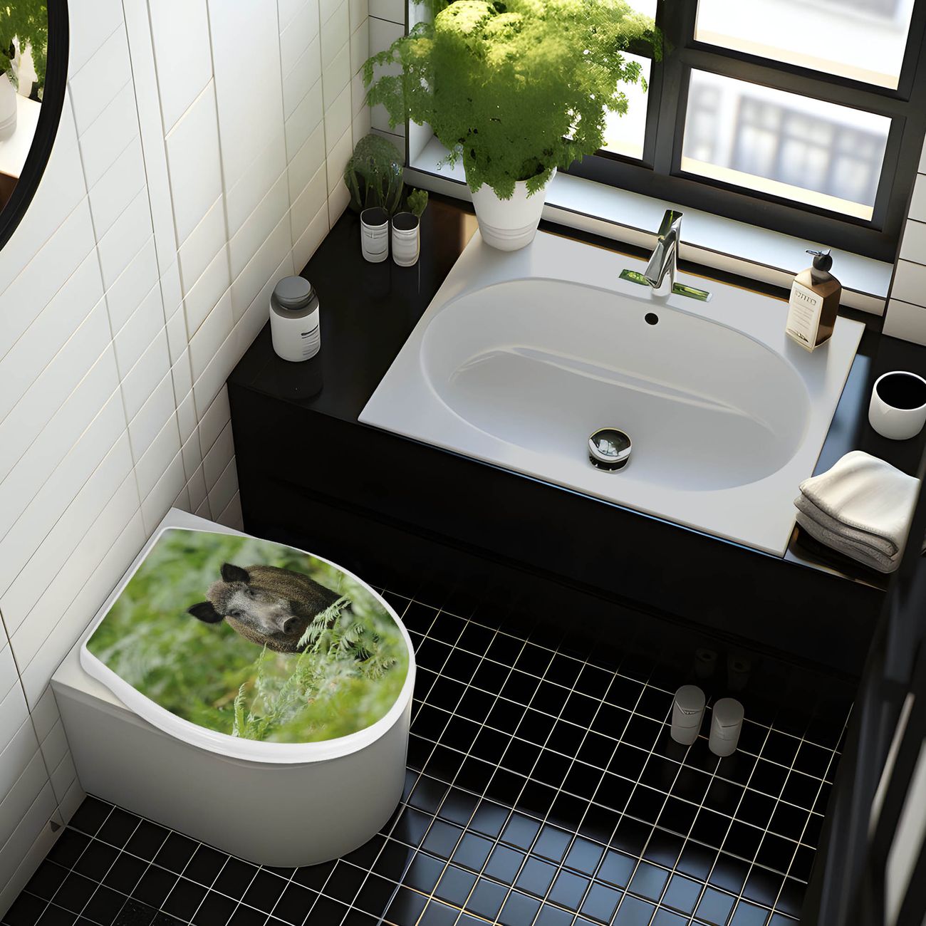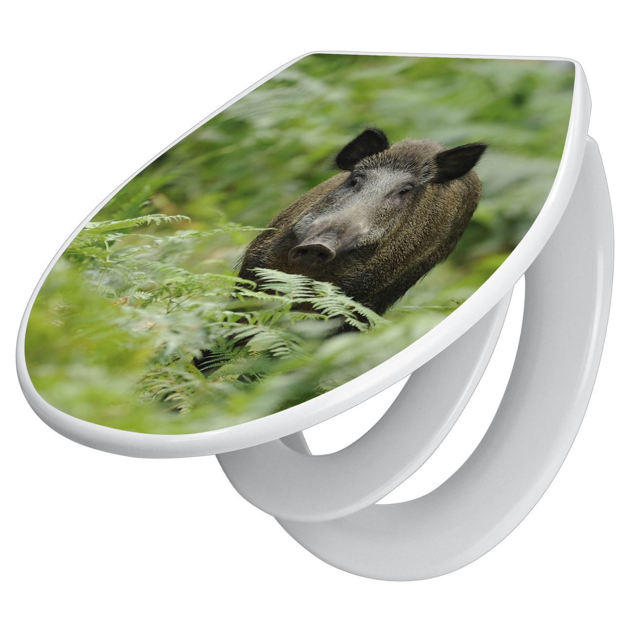 Toilettendeckel weiß mit Absenkautomatik Motiv Wildschwein