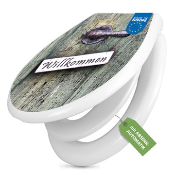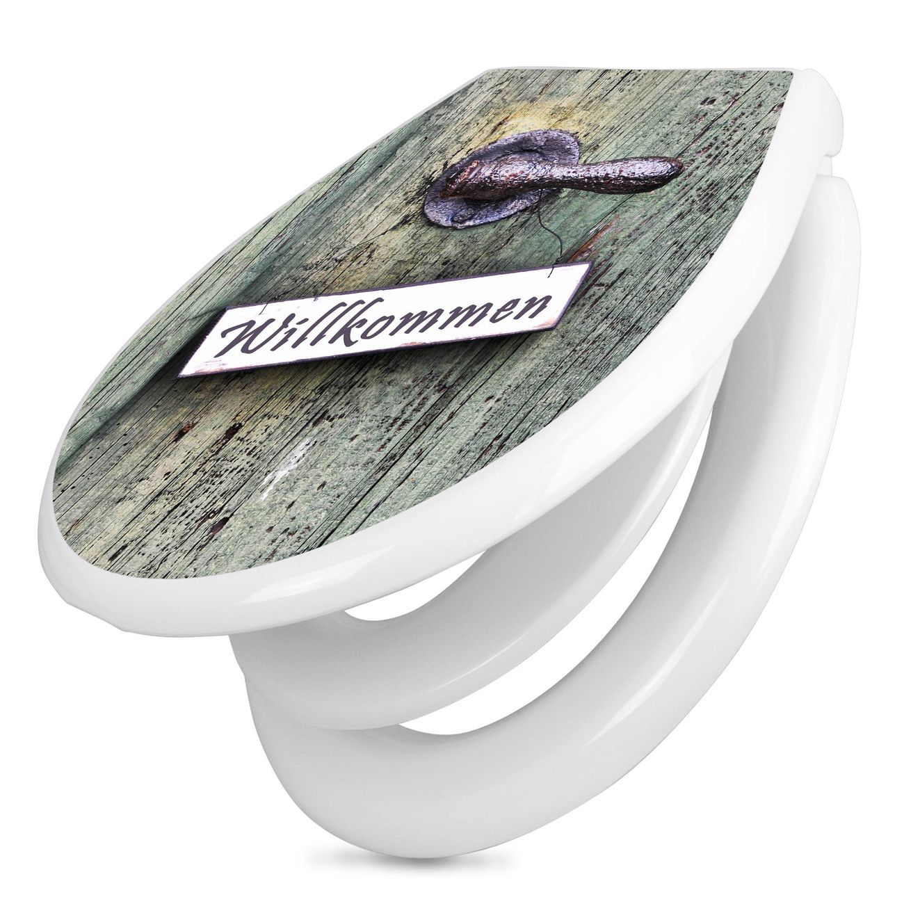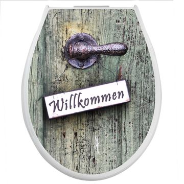 Toilettendeckel weiß mit Absenkautomatik Motiv Willkommen