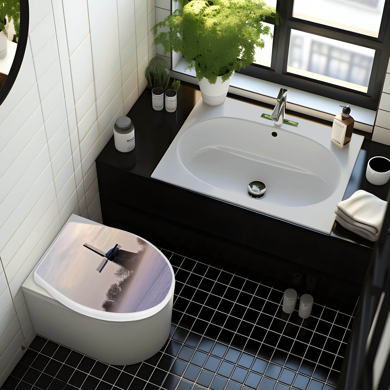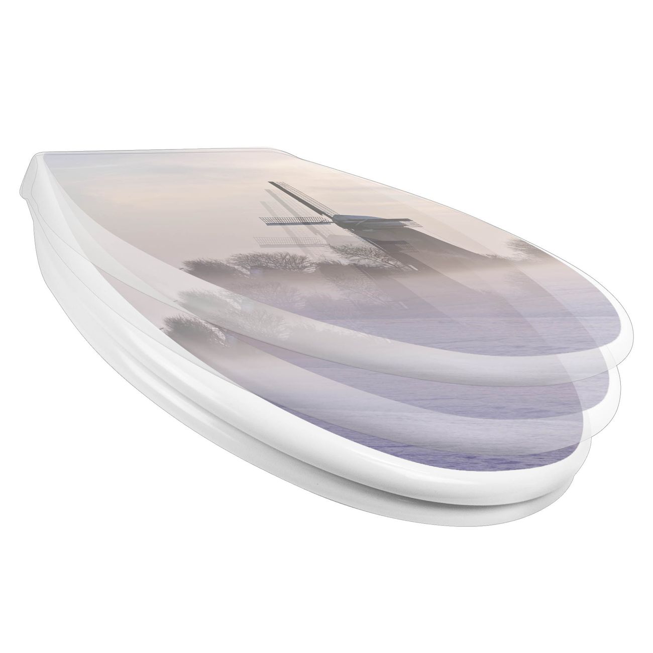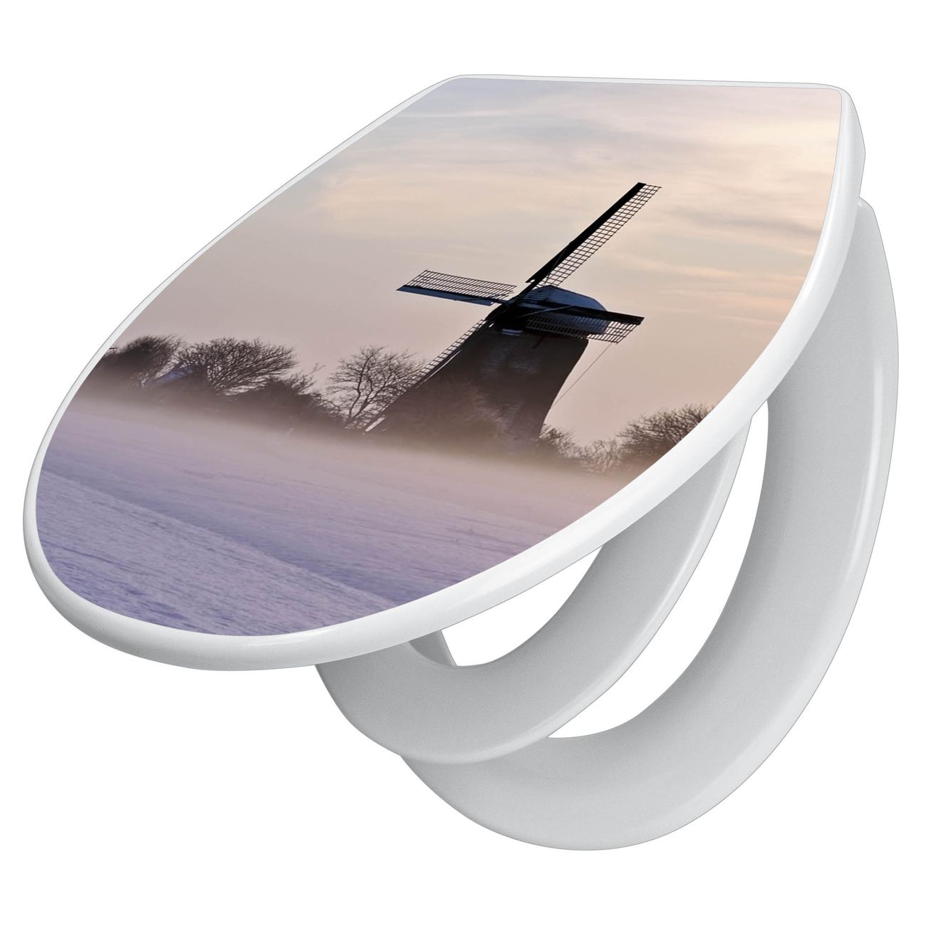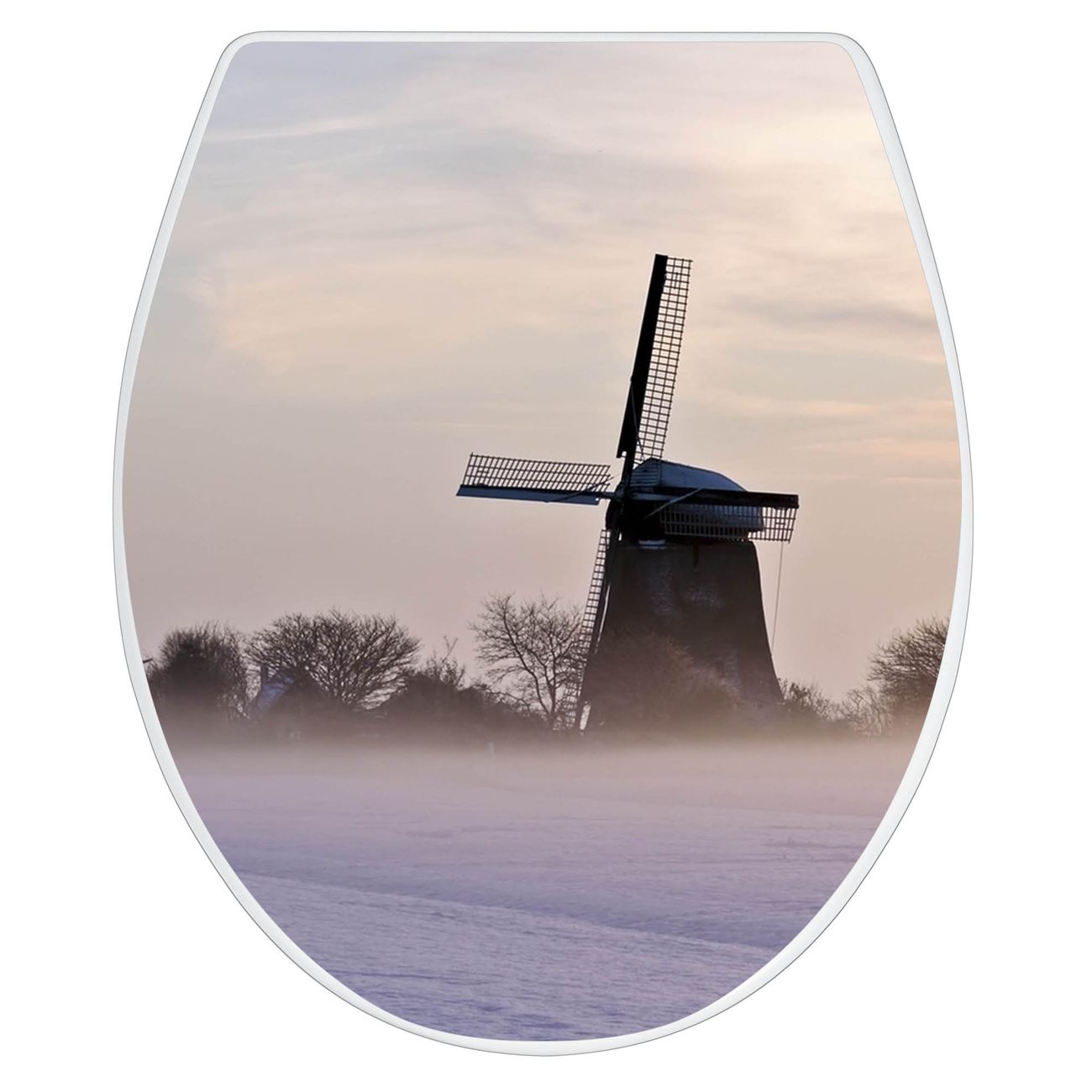 Toilettendeckel weiß mit Absenkautomatik Motiv Windmühle im Winter
