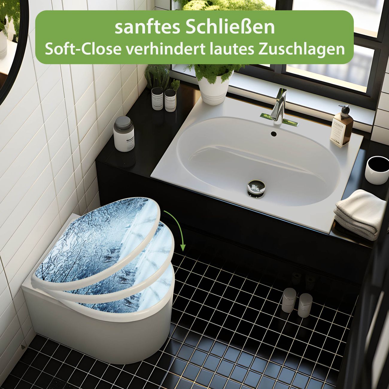 Toilettendeckel weiß mit Absenkautomatik Motiv Winterspaziergang