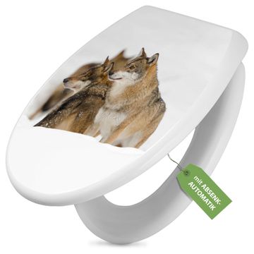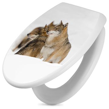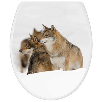 Toilettendeckel weiß mit Absenkautomatik Motiv Wölfe