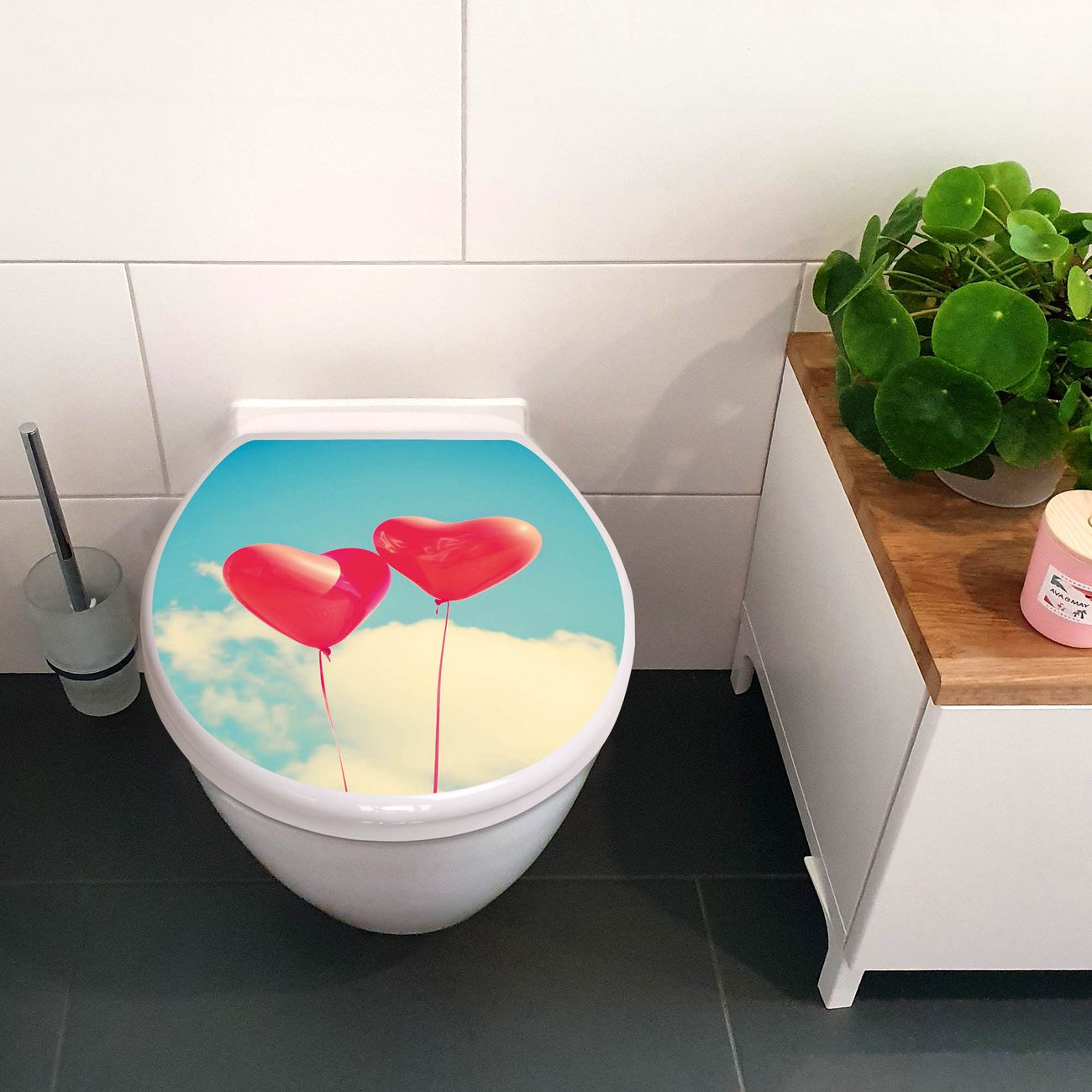 Toilettendeckel weiß mit Absenkautomatik Motiv Wolke Sieben
