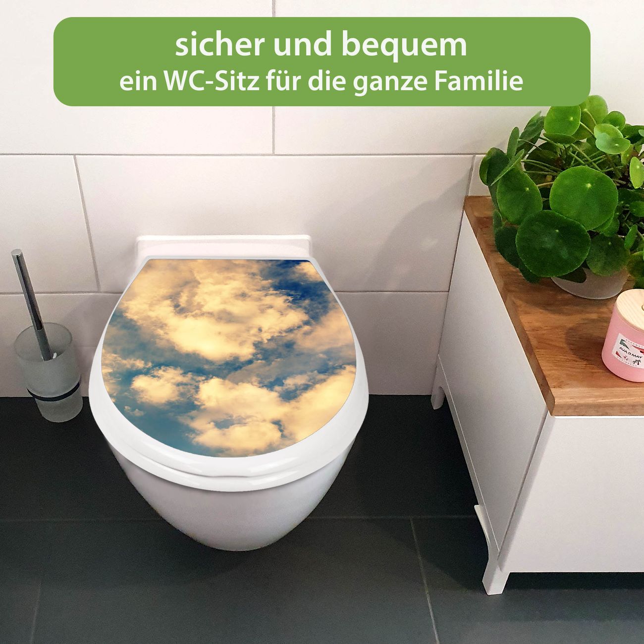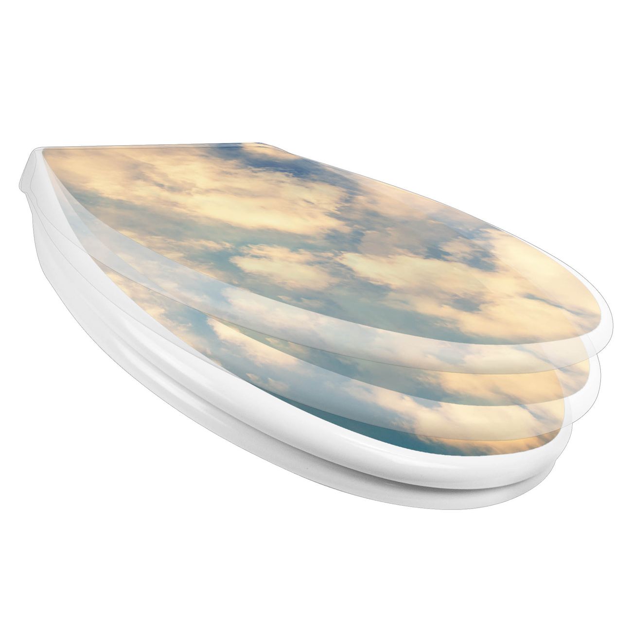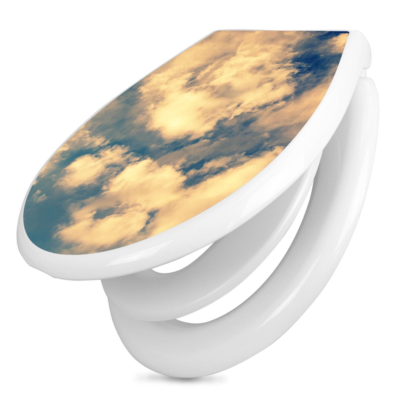 Toilettendeckel weiß mit Absenkautomatik Motiv Wolken 3