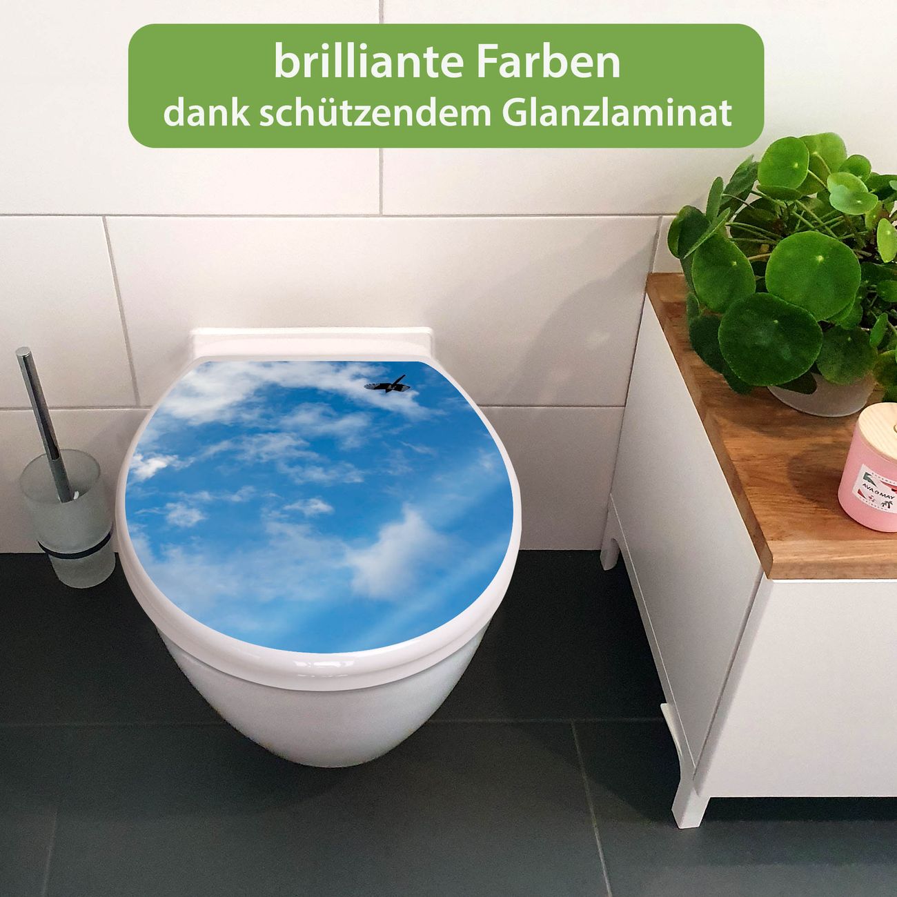 Toilettendeckel weiß mit Absenkautomatik Motiv Wolken 4
