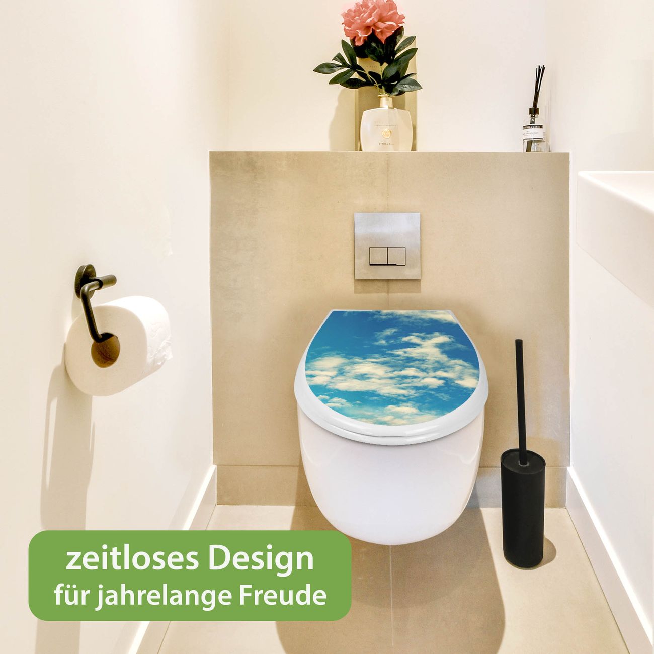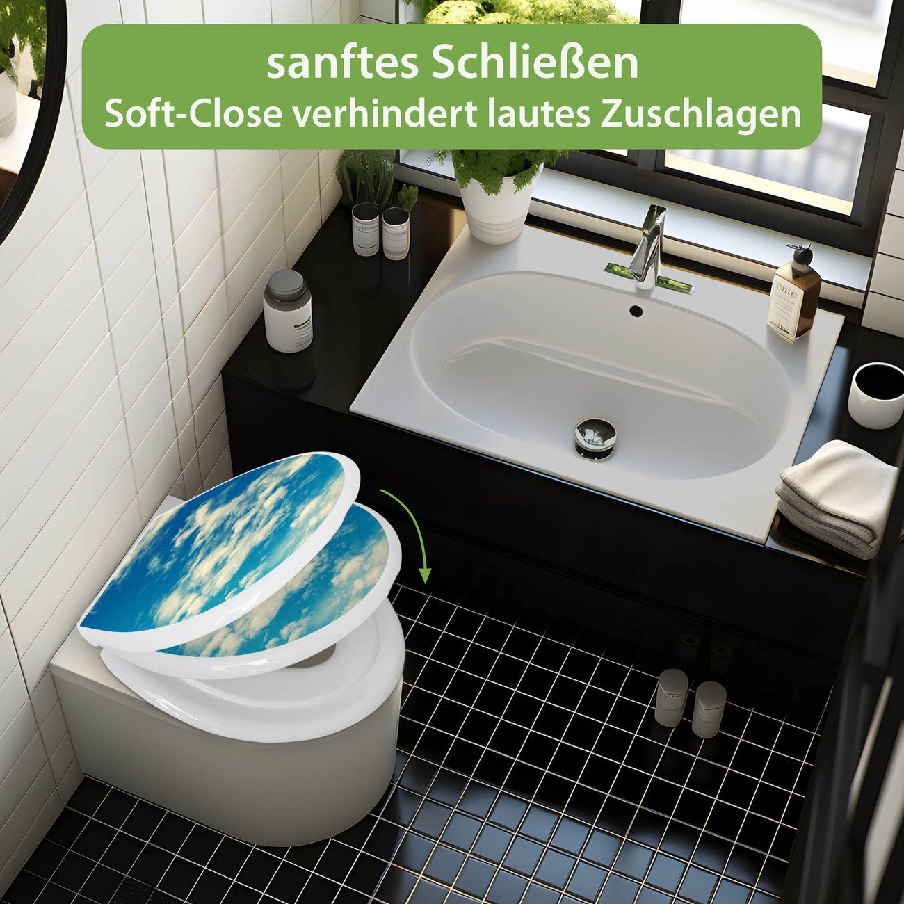 Toilettendeckel weiß mit Absenkautomatik Motiv Wolken 5