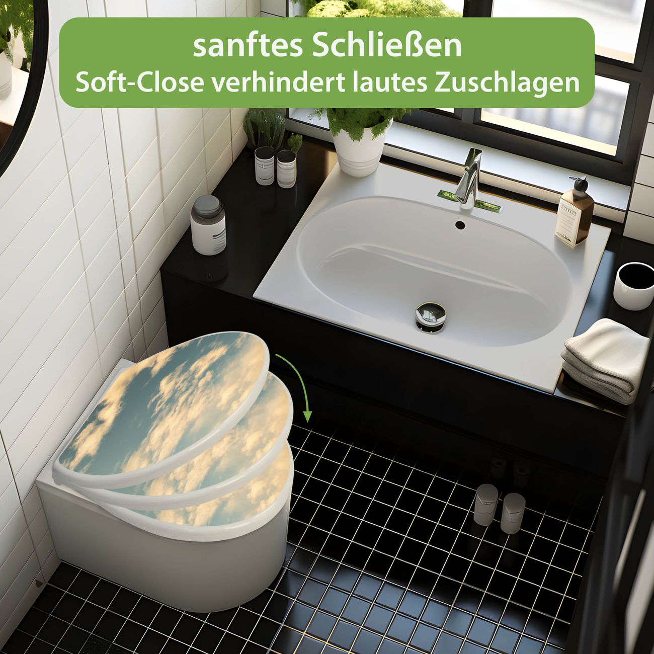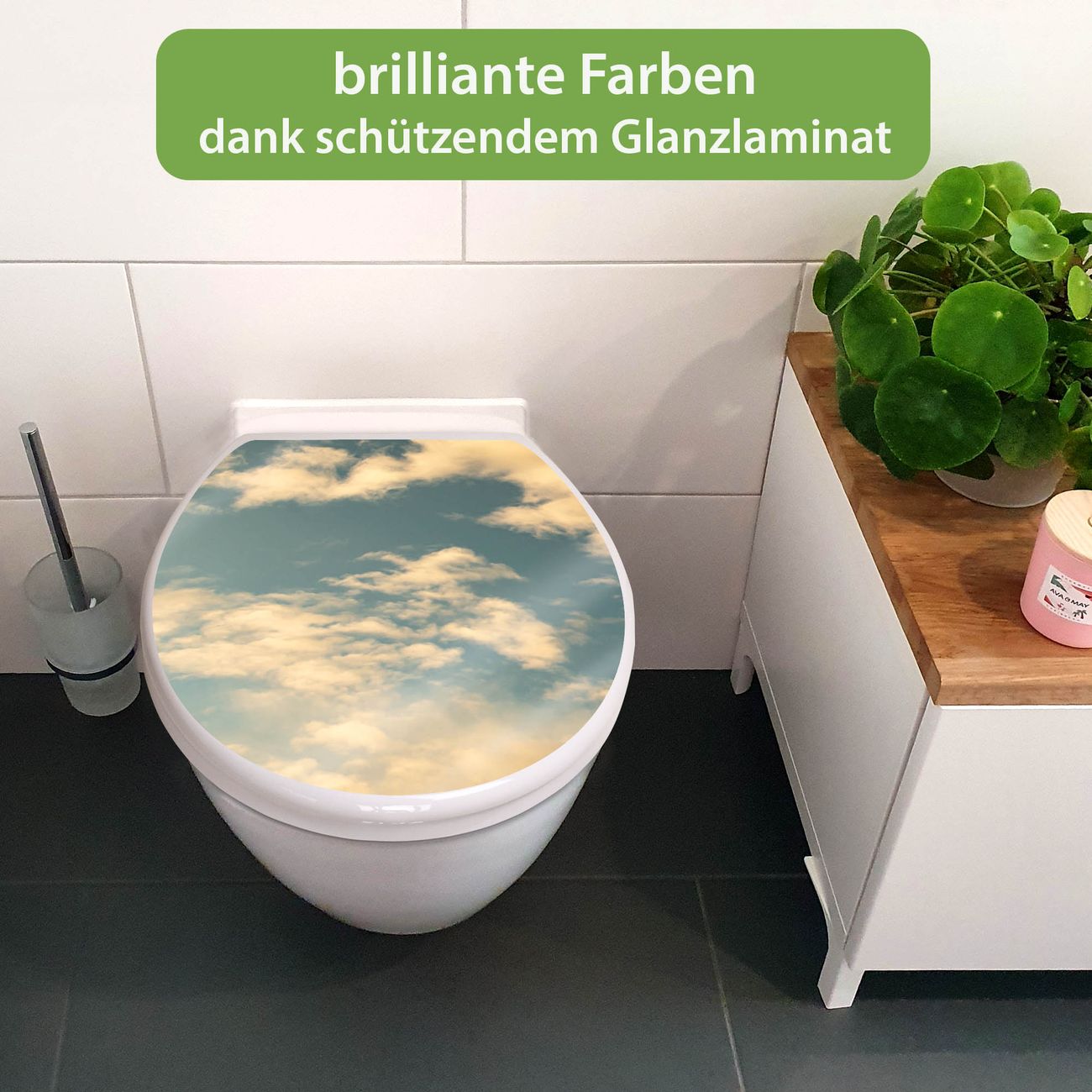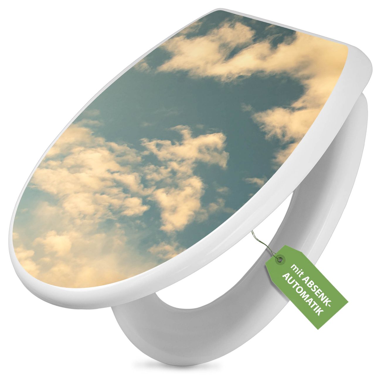 Toilettendeckel weiß mit Absenkautomatik Motiv Wolken 6