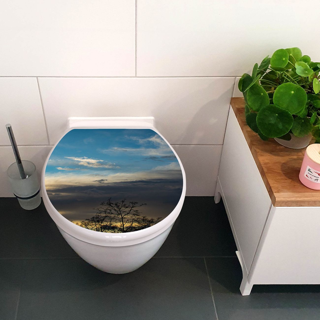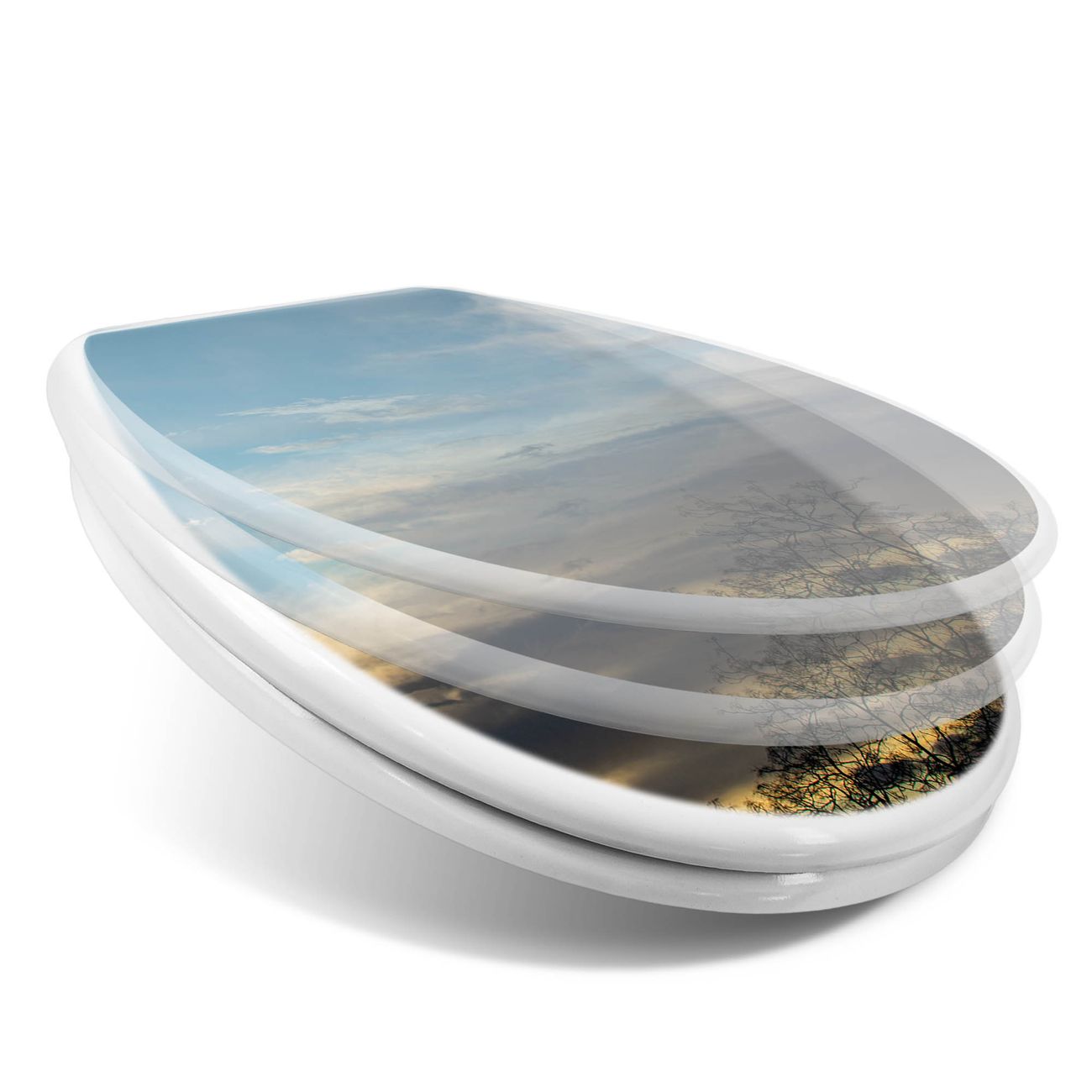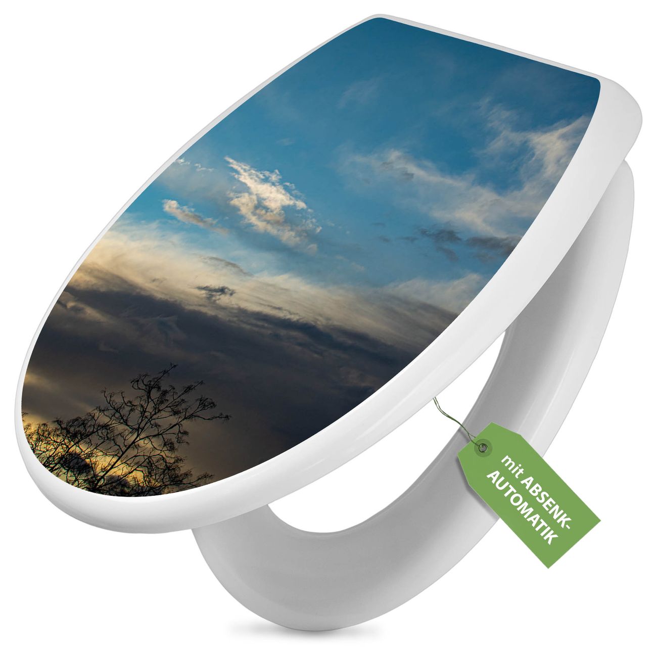 Toilettendeckel weiß mit Absenkautomatik Motiv Wolken 7